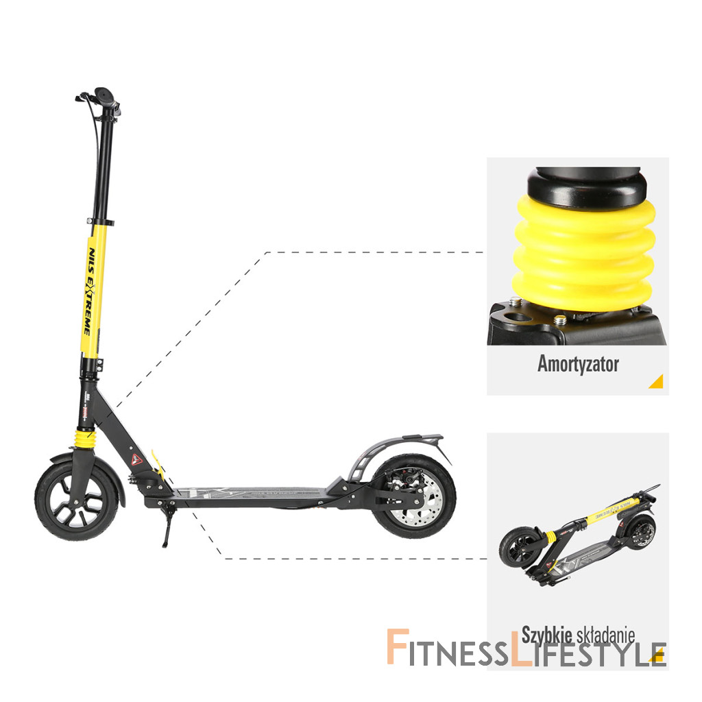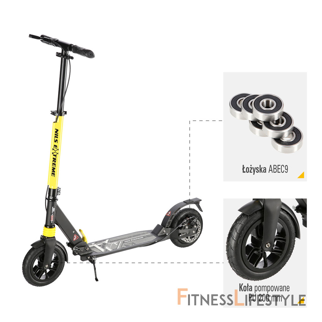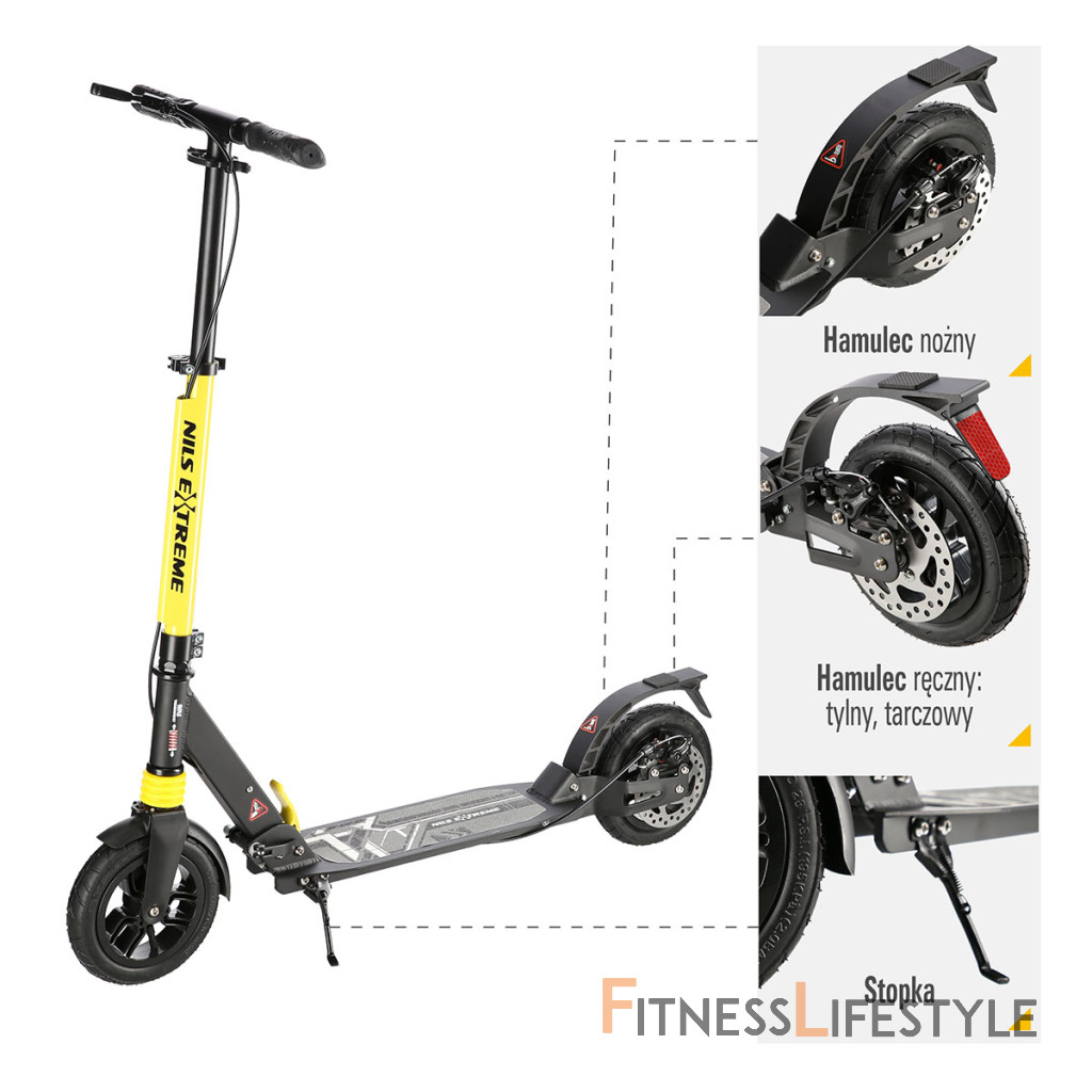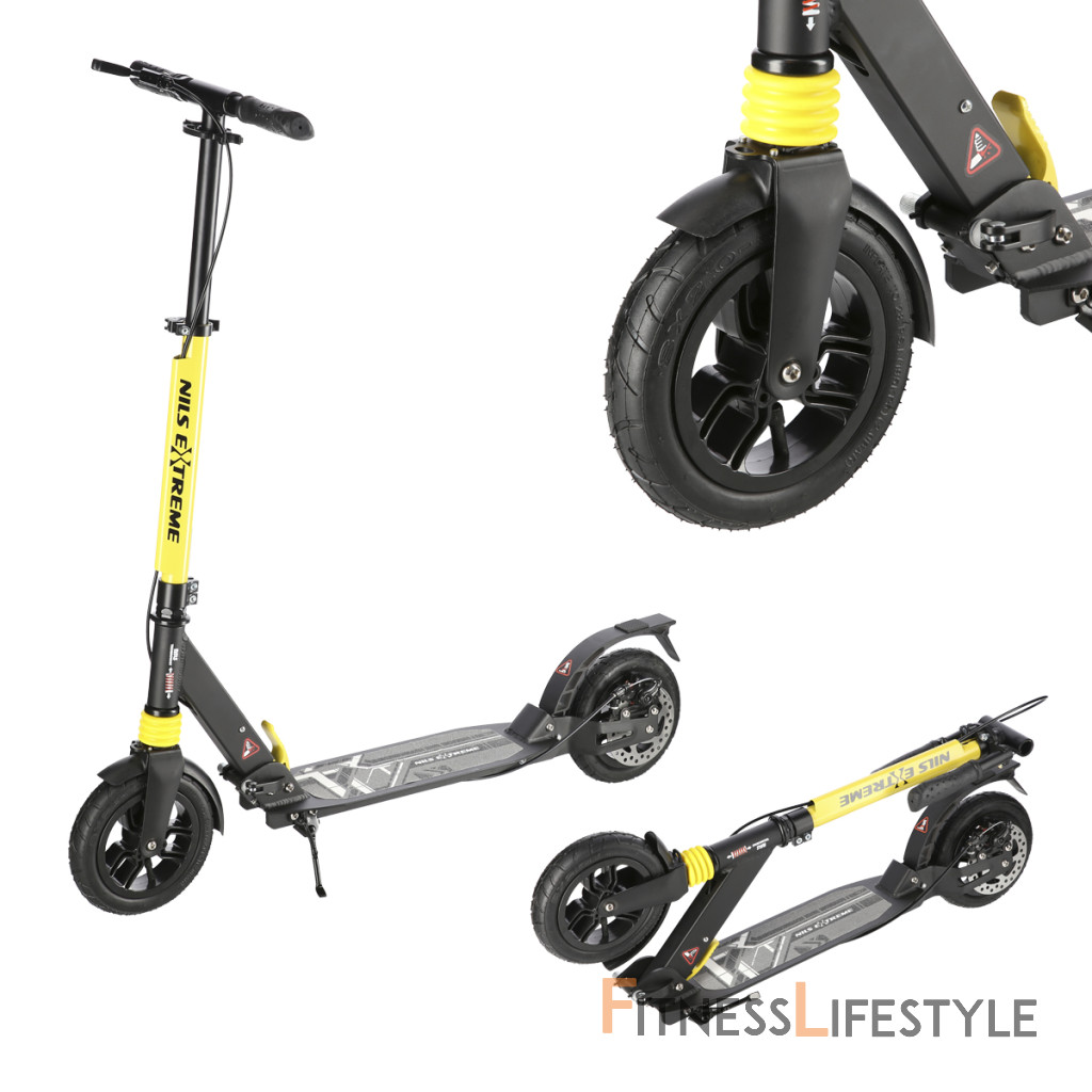 Kolobežka NILS Extreme HM208T je vhodná pre deti aj dospelých. Charakteristikou modelu HM208T sú tlmiče na prednom aj zadnom kolese a mechanická, kotúčová brzda.