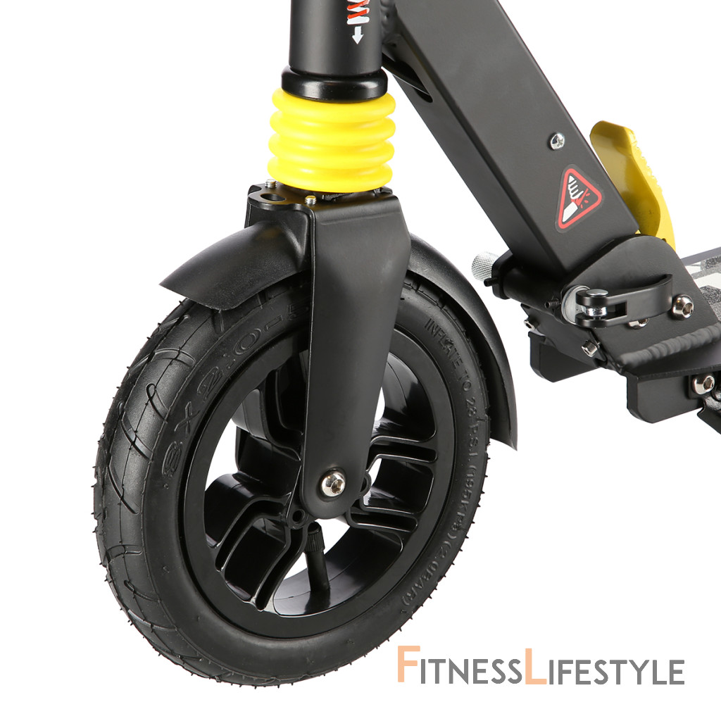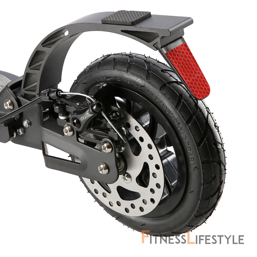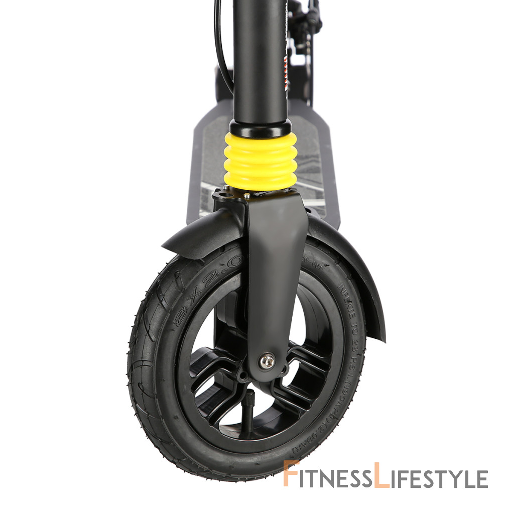 Systém odpruženia oboch kolies zvyšuje jazdný komfort. Tlmiče pohlcujú nárazy a jazda po nerovnom asfalte, alebo dlažobných kockách je príjemnejšia a ťažšia. Robustný zadný blatník slúži ako prítlačná brzda, ktorá ešte podčiarkuje brzdný účinok kotúča. Samotný kotúč je brzdený jedným piestkom, ktorý je mechanicky ovládaný lankom z páčky na riadidlách, tie sú opatrené gumovými rukoväťami, ktoré zaisťujú pevný a pohodlný úchop. Veľké kolesá sú osadené ložiskami ABEC 9 a pumpovanou pneumatikou s priemerom 200 milimetrov. Táto kombinácia zaisťuje rýchlu, plynulú a bezpečnú jazdu. Pumpované pneumatiky navyše spolupracujú s tlmičmi a taktiež pohlcujú povrchové nerovnosti. Blatník na prednom kolese a skladací stojan sú už len pomyselnou "čerešničkou na torte", ktorá prispieva k maximálnemu možnému komfortu z jazdy ak celkovej radosti zo samotného používania modelu MH208T.