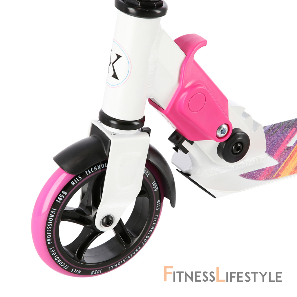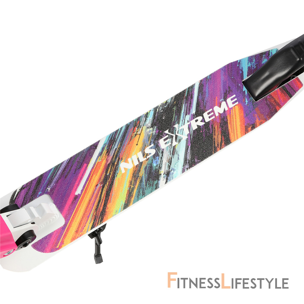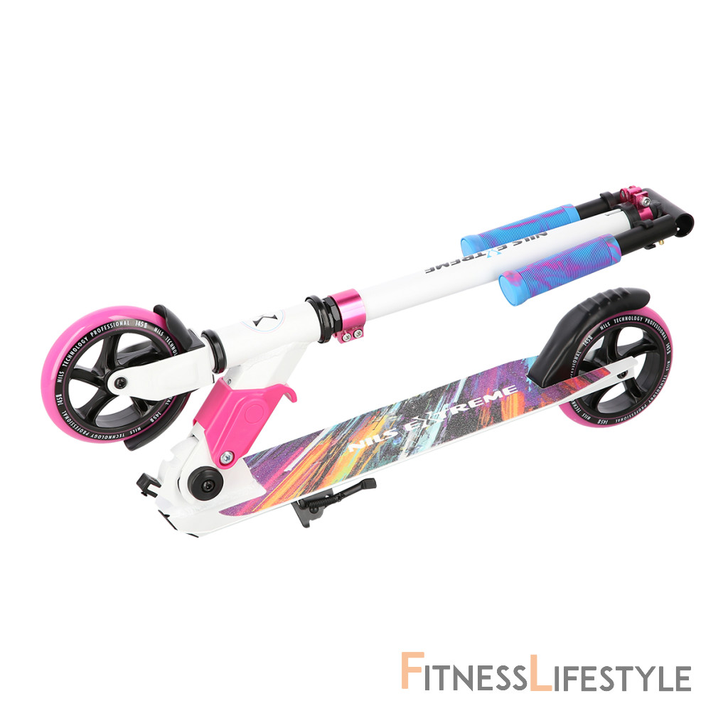 Skladacia kolobežka NILS Extreme HD541 je určená predovšetkým pre deti a dorast. Hlavnou prednosťou tohto modelu sú polyuretánové kolieska s priemerom 145 milimetrov, ktoré zaručujú pohodlnú jazdu. Kolobežku je možné zložiť, takže pri uskladnení nezaberá veľa miesta a zároveň si ju môžete brať takmer kamkoľvek sebou či už idete na výlet napríklad vlakom alebo pokiaľ idete autom na dovolenku do zahraničia. Ďalšími výraznými prvkami sú protišmyková nášľapná plocha, gumové madlá a zadná prítlačná brzda. Kladieme dôraz predovšetkým na atraktívny vzhľad a kvalitné prevedenie, vďaka ktorému máte istotu, že kupujete kvalitnú kolobežku, ktorá poteší a zároveň aj ochráni. Ak chcete pre bezpečnosť urobiť maximum, nezabudnite sa porozhliadnuť po prilbe a chráničoch.