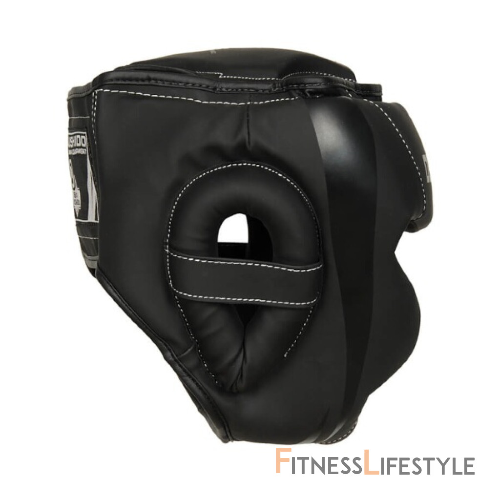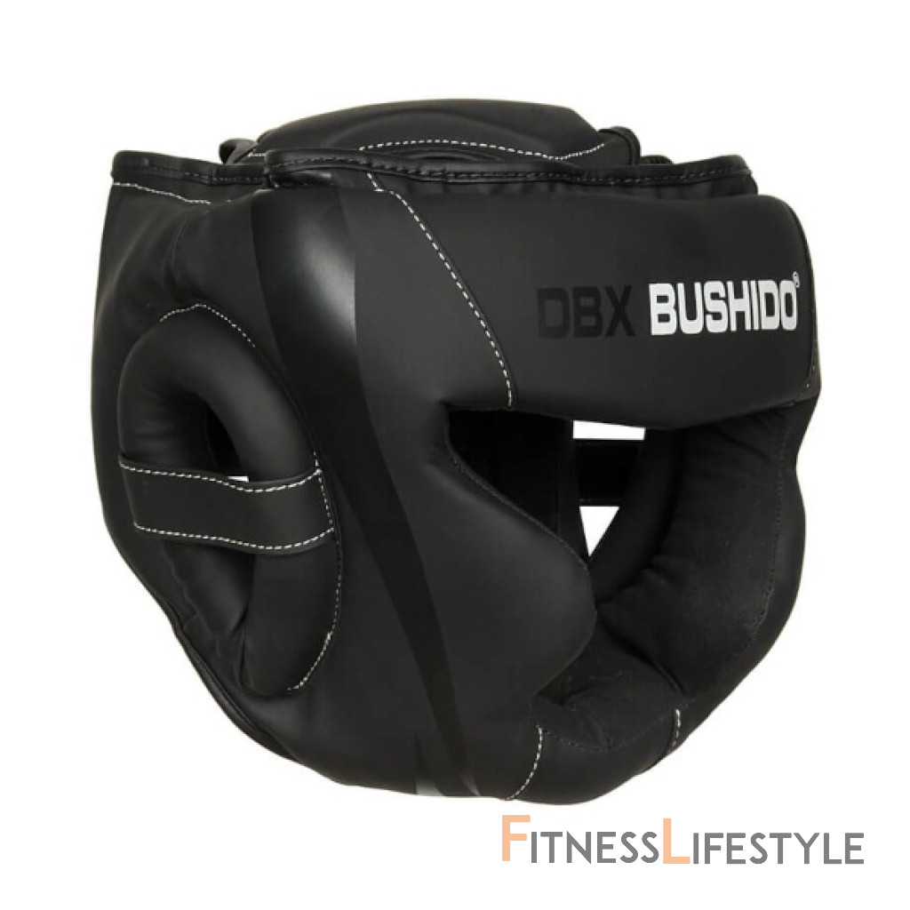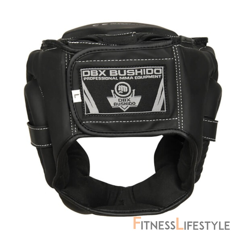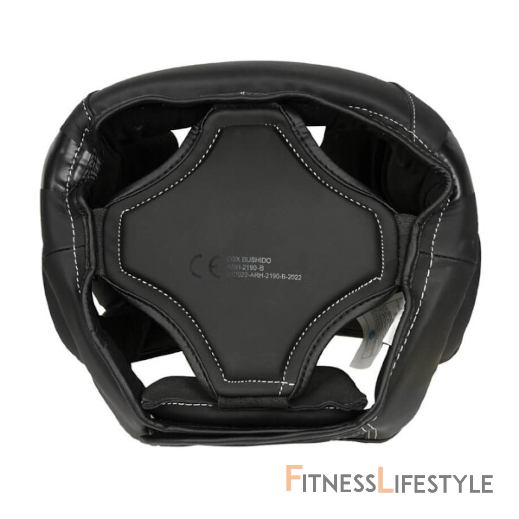 Boxerská helma DBX BUSHIDO ARH-2190-B je vyrobená zo spevnenej, umelej kože a je vyplnená PU penou, ktorá dokonale pohlcuje nárazy. Prilba je navrhnutá v súlade s bezpečnostnými štandardmi a zaisťuje tak bezpečnosť a komfort počas zápasu, tréningu či nácviku so sparing partnerom. Tvar helmy je navrhnutý tak, aby boli chránené lícne kosti, oči, nos a uši. Spevnenie v oblasti čeľuste jej poskytuje väčšiu stabilitu a napomáha predchádzať jej zraneniam. Helma je vyrobená z umelej kože so zvýšenou elasticitou. Vnútri je vyplnená penou vysokej hustoty a povrch je upravený tak, aby nenasával pot. Vďaka tomu odoláva praskaniu a ľahko sa udržuje. Zo zadnej strany je široký pás so suchým zipsom, ktorý zaručuje, že helma bude na hlave presne sedieť.