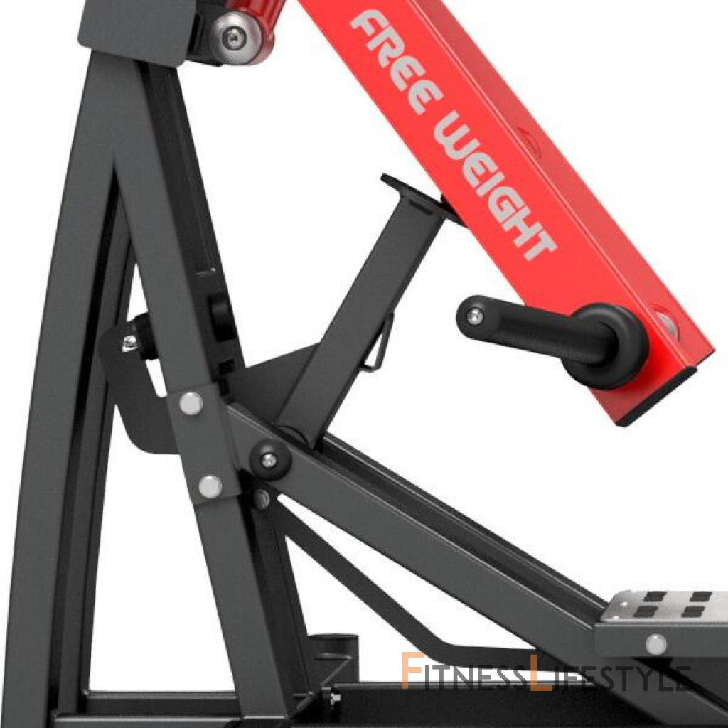 Leg press MARBO MF-U013 je vybavený systémom "diaľkového ovládania" istiacej vzpery. Tá je prepojená s madlami pod sedadlom, takže cvičenie je výdy bezpečné. Hlavné nášľapové plochy sú vyrobené z nerezovej desky doplnené gumou. Polostrovanie je vyrobené z odolnej, syntetickej kože, dvakrát prešitej režnou niťou COATS a je vyplnené vrstvou tvrdej peny pre maximálny komfort.