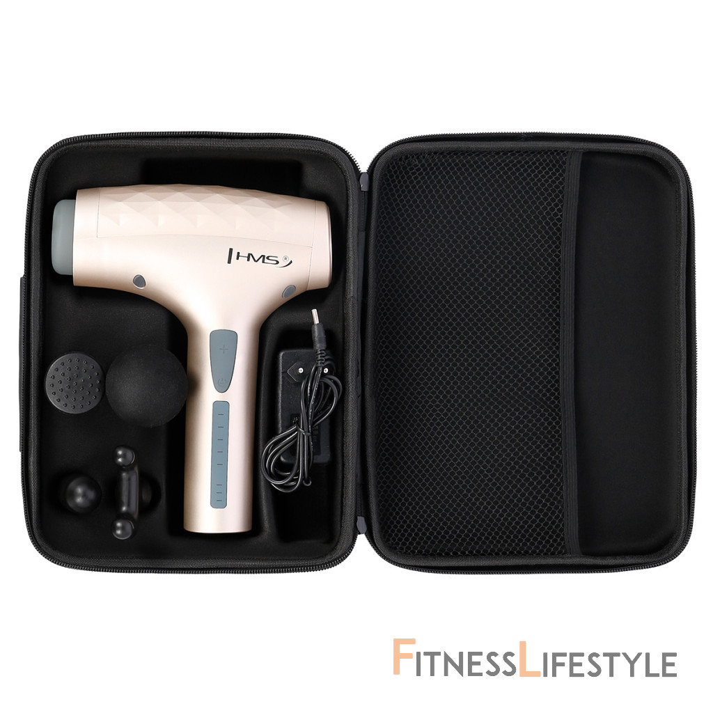 Masážna pištoľ HMS PDM3134I je ideálnym nástrojom pre hĺbkovú masáž svalov celého tela. Tento masážny prístroj nájde uplatnenie ako u športovcov, tak aj u ľudí so sedavým životným štýlom, alebo napríklad u fyzioterapeutov. PDM3134I obdržíte v elegantnom kufríku čiernej farby spolu so štyrmi nástavcami, napájacím adaptérom a návodom na použitie.