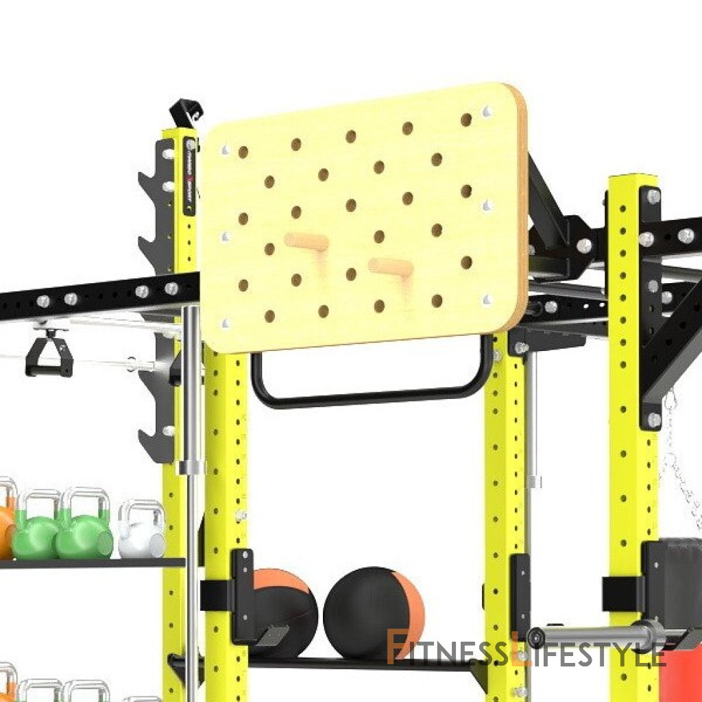Peg Board je pomôcka na posilňovanie svalov horných partií. Ide o dva kolíky, ktorými sa presúvate medzi 27-mi otvormi v doske. Tá má hrúbku 40 mm a zaručuje tak maximálnu pevnosť. Otvory majú priemer 30 mm a vzdialenosť medzi nimi je 8 cm. 2 dodávané kolíky majú dĺžku 17,5 cm a skladajú sa z dvoch častí, kedy prvá je vkladacia a má dĺžku 5 cm s priemerom 30mm. Druhá časť je úchopová a dĺžkou 12,5 cm a priemerom 35 mm. Pod doskou je hrazda, ktorá slúži napríklad ako štartovacia pozícia, alebo k "odpočinku". Montáž sa vykonáva pomocou 2 ks dodávaných skrutiek.