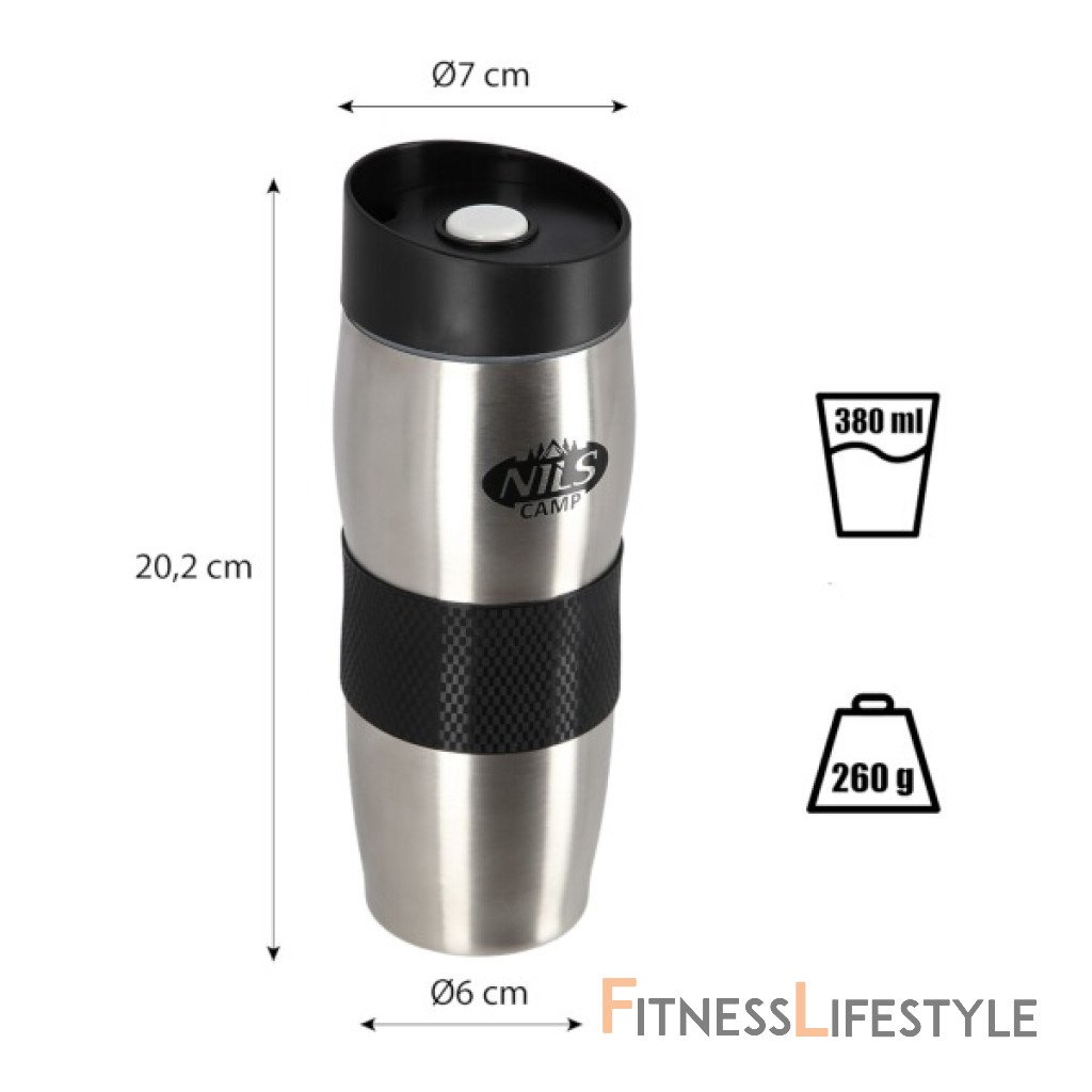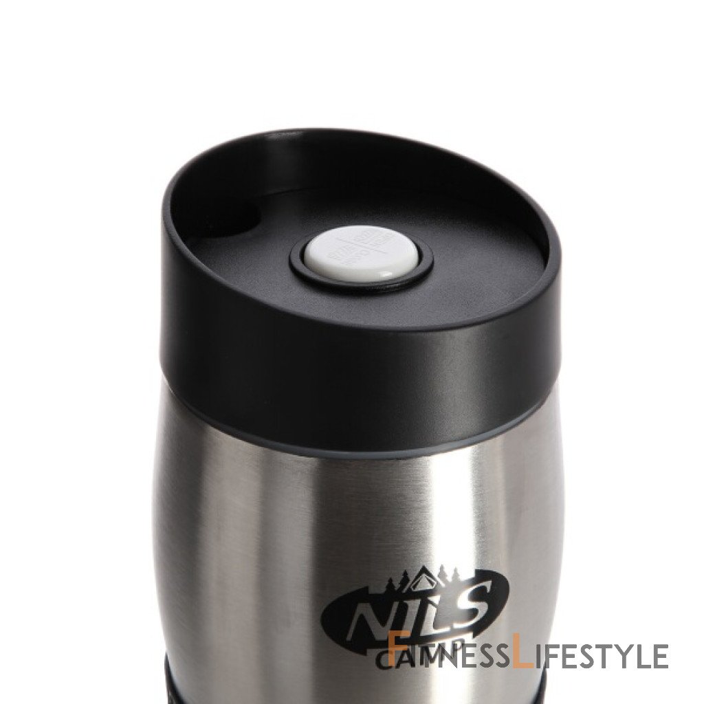 Termohrnček NILS Camp NCC05 sa vyznačuje jednoduchou konštrukciou a originálnym dizajnom! Termohrnček je vyrobený z nerezovej ocele s dvojitou stenou, ktorá zaručuje uchovanie teplých nápojov po dobu 12 hodín a studených po dobu 24 hodín, nezáleží teda, či si do hrnčeka pripravíte rannú kávu, ktorú vypijete cestou do práce alebo či si do neho prelejete obľúbenú limonádu a vezmete si ho so sebou na niekoľkohodinovú prechádzku do prírody, termohrnček udrží Váš nápoj v správnej teplote. Model NCC05 má veľmi pohodlný systém otvárania. Pokiaľ sa budete chcieť napiť, jednoducho stačí stlačiť tlačidlo na viečku a a prietokový otvor sa otvorí. Akonáhle tlačidlo stlačíte znova, hrnček sa uzavrie. Ďalšou veľkou výhodou je, že spodná časť hrnčeka je opatrená protišmykovou gumou, ktorá zvyšuje bezpečnosť pred rozliatím horúcej kávy alebo čaju, keď je hrnček otvorený!