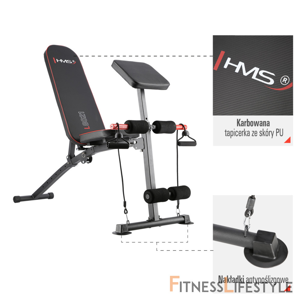 Posilňovacia lavica HMS L8021 je ideálnym doplnkom každej domácej posilňovne. Vďaka polohovateľnej opierke chrbta a výškovo nastaviteľnému modlitebníku je lavica L8021 ideálna pre väčšinu cvikov nech chcete posilňovať bicepsy, tricepsy, hrudník, brucho, chrbát, ramená alebo nohy.