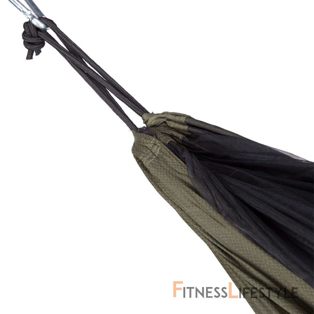 Hojdacia sieť je vyrobená z nylonu 210T, ktorý je veľmi odolný, trvanlivý a ľahký. Hamaka po zabalení do obalu dosahuje rozmer 24 x 13 centimetrov a hmotnosť je 690 gramov, takže si nájde miesto v každom batohu. Nylon je navyše odolný voči vlhkosti a veľmi rýchlo schne. Nosnosť hamaky je 180 kilogramov.