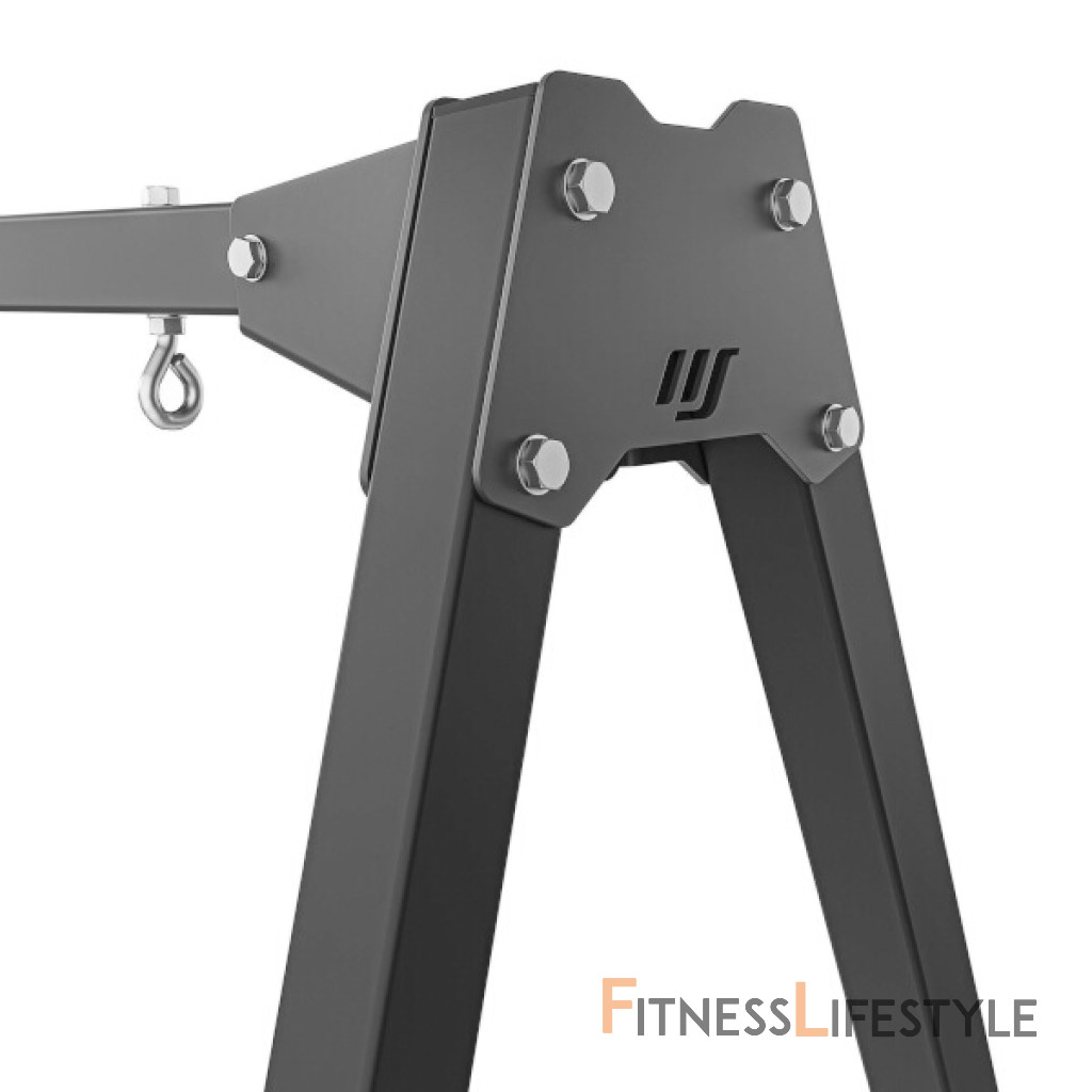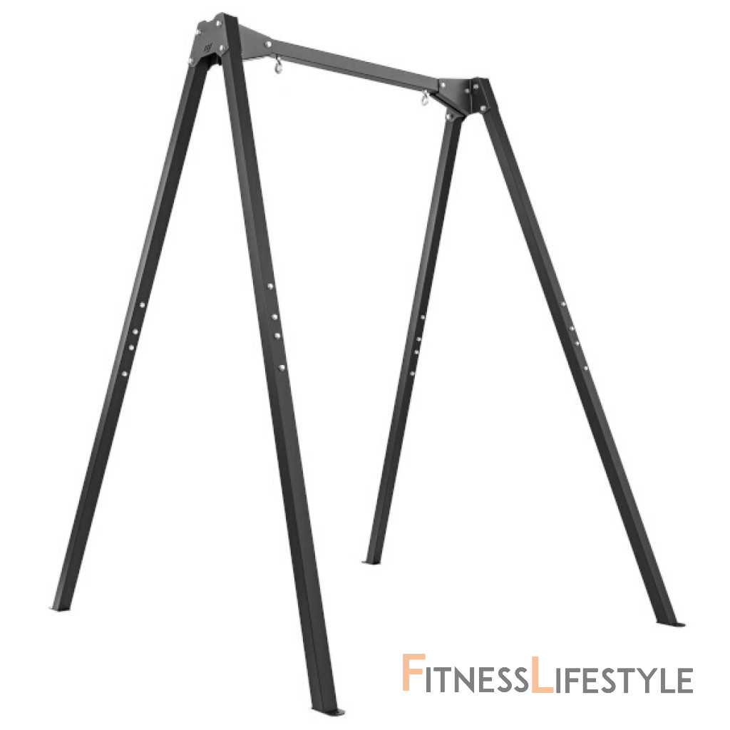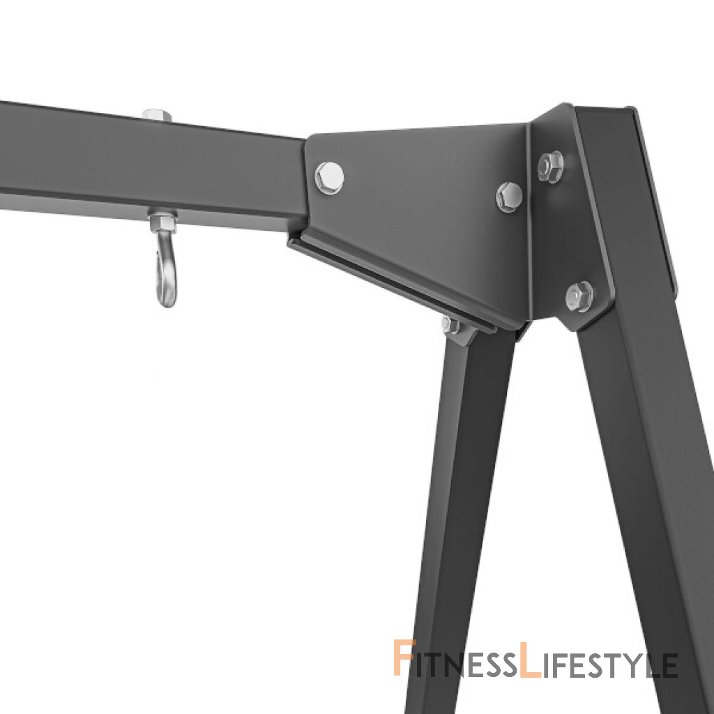 Toto riešenie taktiež umožňuje pohodlne používať viac príslušenstva. Jeden rám môžete ľahko použiť napríklad na záhradnú hojdačku, brazílske kreslo, závesný posilňovací systém, lano na šplh alebo boxovacie vrece.