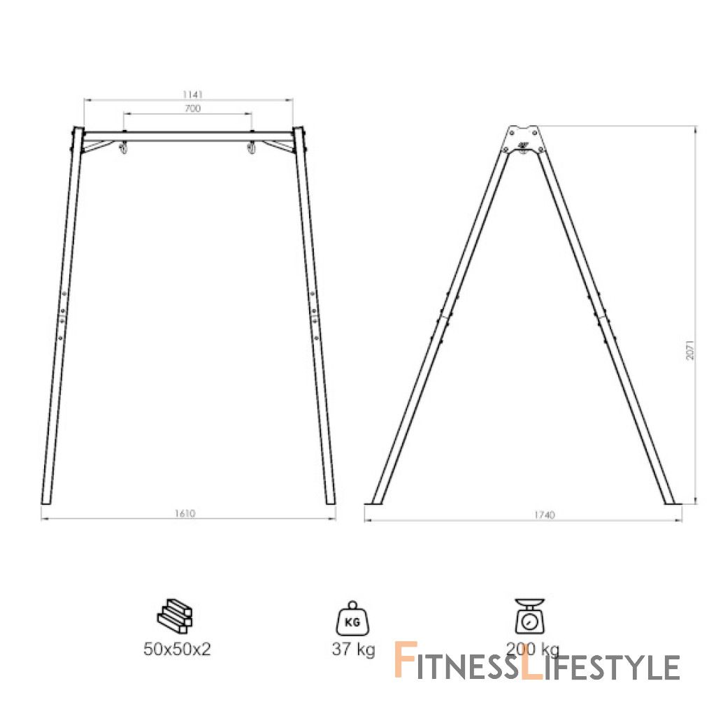 Ponúkaný výrobok je vysoko kvalitná, odolná a bezpečná konštrukcia z oceľových profilov s prierezom 50x50x2 mm zaručuje nosnosť až 200 kg.
