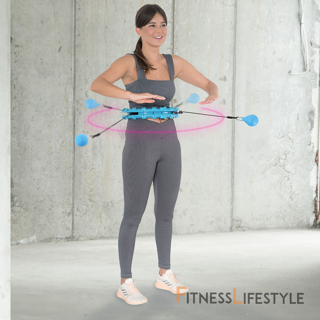 Dĺžka obruče sa nastaví podľa obvodu pása tak, aby bola dostatočne voľná, ale zároveň aby nepadala cez boky. Po nastavení dĺžky sa obruč uzamkne pomocou spojovacieho dielu, ktorý je osadený páčkami na ovládanie zámku. Závažie sa následne „vrhne“ smerom, do ktorého budeme krútiť boky a začneme tréning. Obruč HHW01 je z vnútornej strany vybavená masážnymi klobúčikmi s pružinami, ktoré tlmia vibrácie od pohybujúcej sa kotvy a zároveň príjemne masírujú oblasť pása. Intenzitu tréningu ovplyvňuje dĺžka povrázku a rýchlosť, akú krútime boky.