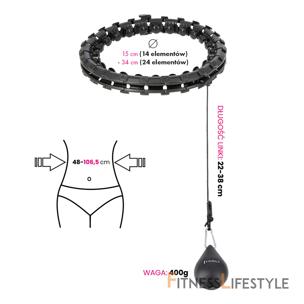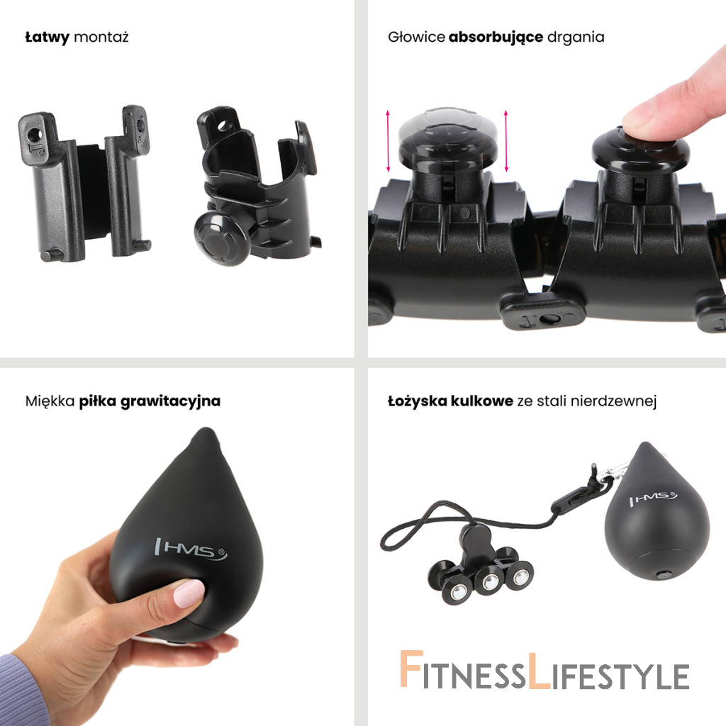 HMS HHW01 je hula hop obruč s nastaviteľnou dĺžkou, masážnymi výstupkami a rotujúcim závažím.