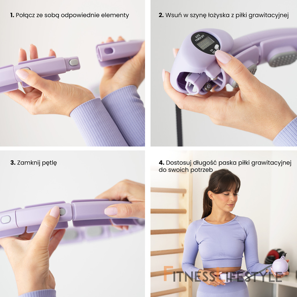Dĺžka obruče sa nastaví podľa obvodu pása tak, aby bola dostatočne voľná, ale zároveň aby nepadala cez boky. Po nastavení dĺžky sa obruč uzamkne pomocou spojovacieho dielu, ktorý je osadený páčkou na ovládanie zámku. Závažie sa následne „vrhne“ smerom, do ktorého budeme krútiť boky a začneme tréning. Obruč HHW09 je z vnútornej strany vybavená masážnymi výstupkami s pružinami, ktoré tlmia vibrácie od pohybujúcej sa kotvy a zároveň príjemne masírujú oblasť pása. Intenzitu tréningu ovplyvňuje dĺžka povrázku a rýchlosť, akú krútime boky.