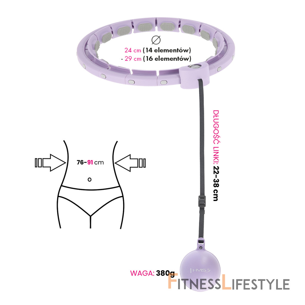 HMS HHW09 je hula hop obruč s nastaviteľnou dĺžkou, masážnymi výstupkami a rotujúcim závažím.