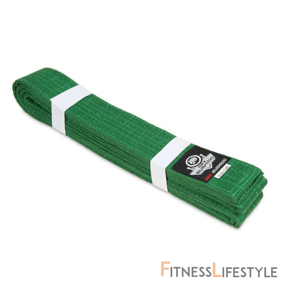 Pás ku kimonu DBX BUSHIDO OBI zelenej farby, ktorý označuje technický stupeň 4. KYU.