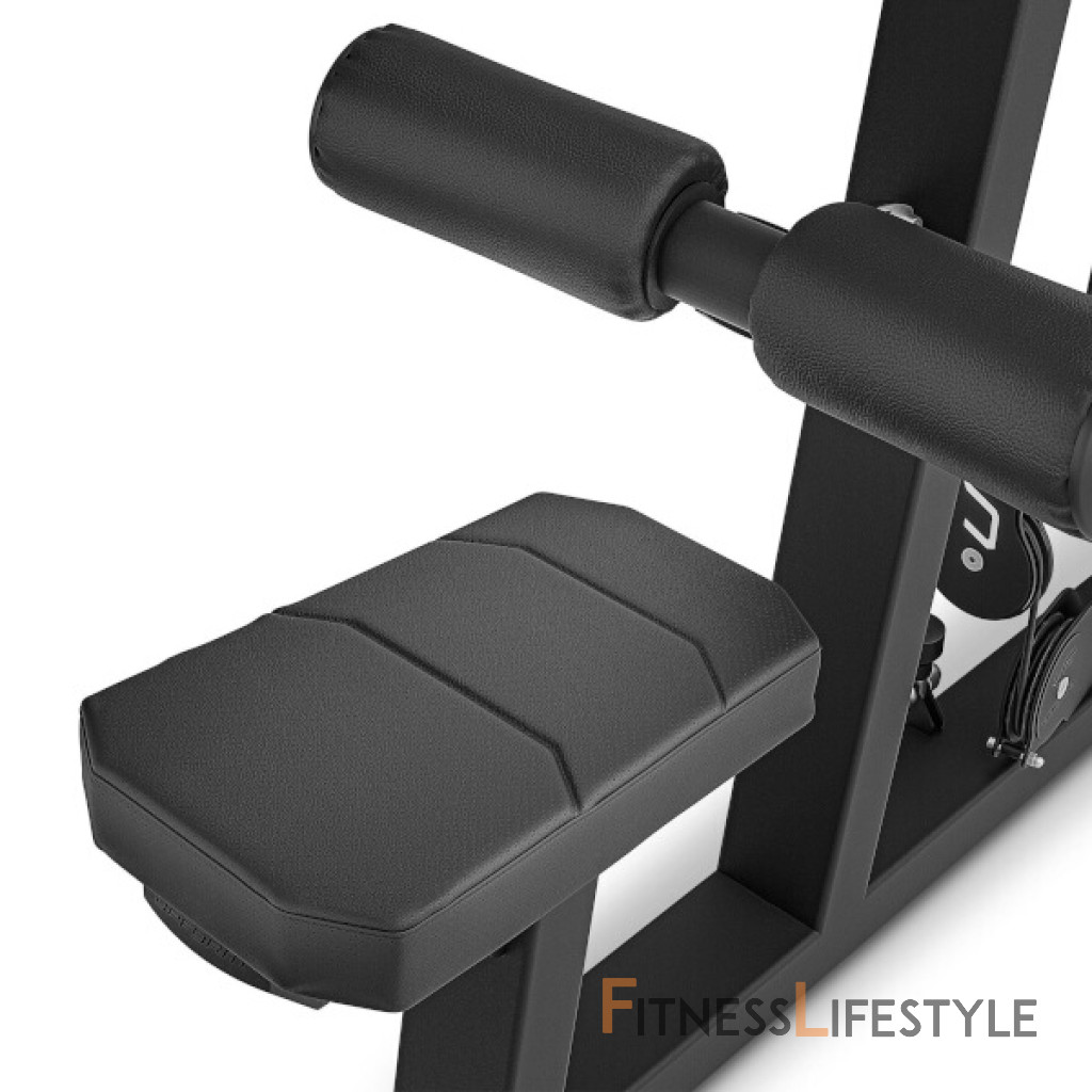 UpForm UF-020 má 2 prepojené ramená zakončené madlom potiahnutým veľmi odolným, penovým materiálom pre pevný a istý úchop. Ramená sú spojené oceľovým lanom so zásobníkom závažia čítajúcim 16 tehál s hmotnosťou 7,5 kilogramov, k dispozícii teda je 120 kilogramov záťaže. Jednotlivé závažia sú opatrené nálepkou pre rýchlu voľbu požadovanej záťaže ako v kilogramoch, tak v librách. Čap na výber hmotnosti je vyrobený z hliníka a je pripevnený ku krútenému lanku, takže nehrozí jeho strata. Na sedák bolo použité perforované čalúnenie, ktoré zaisťuje dostatočnú ventiláciu a odvod vlhkosti. Záražky nôh sú výškovo nastaviteľné do 5-tich úrovní a tvoria ho valce z EVA peny v návleku zo syntetickej kože. Na ráme sa nachádza štítok s ilustráciou cviku, ktorý je možné na stanici vykonávať.