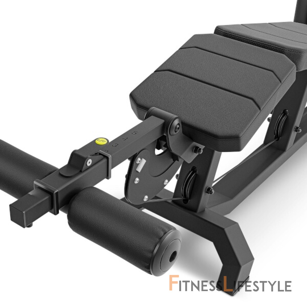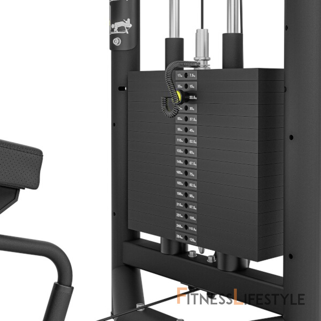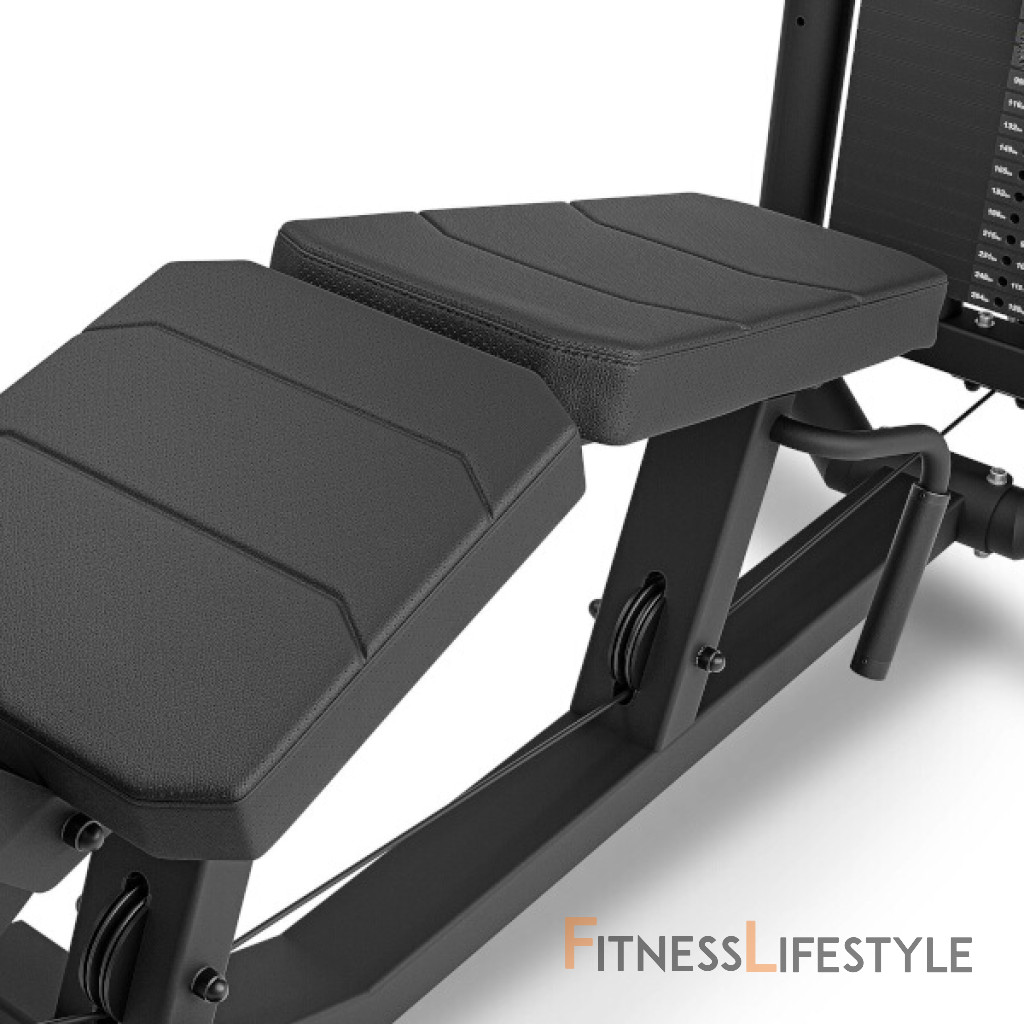 UpForm UF-023 má zarážku nôh nastaviteľnú do 5-tich polôh po stlačení páky a je možné ju teda perfektne prispôsobiť výške cvičenca. Zásobník závažia obsahuje 16 tehál s hmotnosťou 7,5 kilogramov, k dispozícii teda je 120 kilogramov záťaže. Jednotlivé závažia sú opatrené nálepkou pre rýchlu voľbu požadovanej záťaže ako v kilogramoch, tak v librách. Čap na výber hmotnosti je vyrobený z hliníka a je pripevnený ku krútenému lanku, takže nehrozí jeho strata. Na sedák a podperu bolo použité perforované čalúnenie, ktoré zaisťuje dostatočnú ventiláciu a odvod vlhkosti. Na ráme sa nachádza štítok s ilustráciou cviku, ktorý je možné na stanici vykonávať.