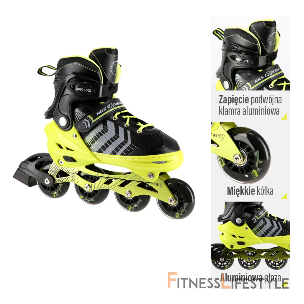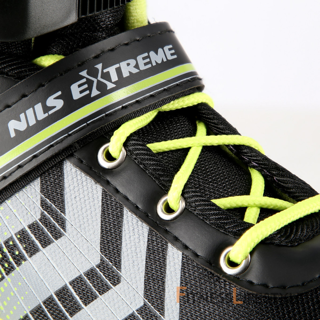 NILS Extreme NH18192 sú kolieskové korčule 4v1 s vymeniteľným nožom na ľad, ktoré sú určené pre začínajúcich a stredne pokročilých užívateľov. Hliníkový podvozok je osadený mäkkými PU kolieskami s ložiskami ABEC7 pre svižnú jazdu. Vonkajšia topánka je pomocou stlačenia tlačidla nastaviteľná do štyroch veľkostí, toto riešenie umožňuje precízne prispôsobenie veľkosti podľa aktuálnych potrieb alebo sa používa ako "rastúca topánka", ktorá "rastie" spolu s nohou dieťaťa. Na špičke sú ventilačné otvory pre maximálnu priedušnosť. Vnútorná topánka je vyrobená z kombinácie semišu, sieťoviny MESH, EVA a peny s vysokou hustotou. Zapínanie je riešenou klasickou trojkombináciou - šnurovanie, remienok so suchým zipsom a dvojsekčná pracka. Súčasťou balenia je sada skrutiek a podložiek na prestavbu podvozku do konfigurácie 2+1 a 2+2 a pár nožov na ľad, ktoré sú vyrobené z nerez ocele s vysokým podielom uhlíka.