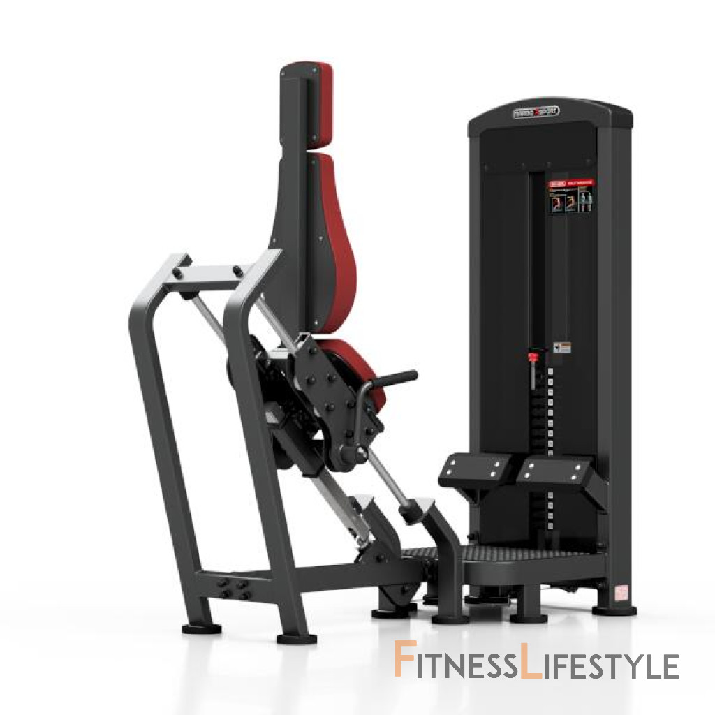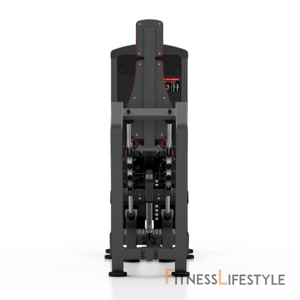 Posilňovač lýtok MARBO MP-U219 je nekompromisné, profesionálne vybavenie pre Vašu posilňovňu. Na výrobu boli zvolené oceľové profily 120x60x3mm a 80x40x3mm, ktoré zaručujú nečakanú trvanlivosť. Záťaž tvorí 6ks 5kg a 10ks 10kg tehál. Celková váha závažia dodávaná so strojom je teda 130kg. Vozík so sedadlom je vybavený inovatívnym systémom nastavenia východiskovej pozície vybavený plynovým piestom. Zo stroja tak nemusíte zostupovať pre zmenu východiskovej výšky. Stačí zatiahnuť za páčku, posunúť sa na pohodlné miesto a páčku uvoľniť. Ako opora nôh sú použité 2 robustné, profilované podpery. Polstrovanie je zo syntetickej kože zošitej režnou niťou značky COATS vyplnené tvrdou penou, to celé je na 3mm hrubej, oceľovej doske. Tichý chod zaisťuje zakrytovanie čiernym plastom, z prednej časti je kryt opatrený priehľadom pre ľahké nastavenie požadovaného počtu tehál. Stroj je navyše opatrený veľkou samolepkou, ktorá inštruuje cvičencov, aké cviky idú na stroji vykonávať a ktoré skupiny svalov daný cvik posilňuje.
