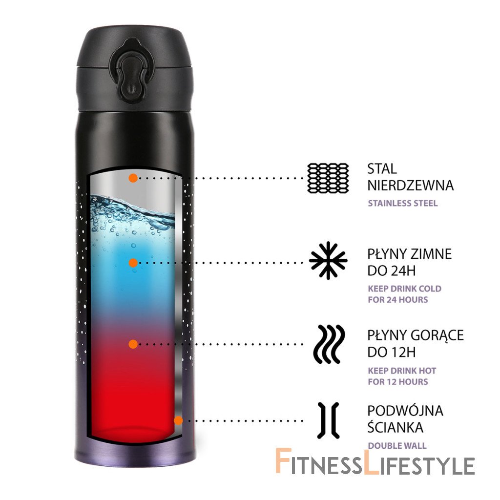 Termoska je vyrobená z nerezovej ocele s dvojitou stenou, ktorá zaručuje uchovanie teplých nápojov po dobu 12 hodín a studených po dobu 24 hodín, nezáleží teda, či si do termosky pripravíte rannú kávu, ktorú vypijete v kancelárii alebo či si do nej zalejete obľúbenú limonádu a vezmete si ju so sebou na niekoľkohodinovú prechádzku do prírody, termoska udrží Váš nápoj v správnej teplote.