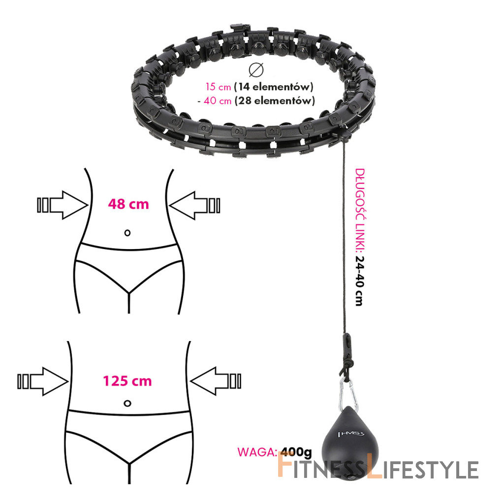 HMS HHW12 je hula hop obruč s nastaviteľnou dĺžkou, masážnymi výstupkami a rotujúcim závažím.