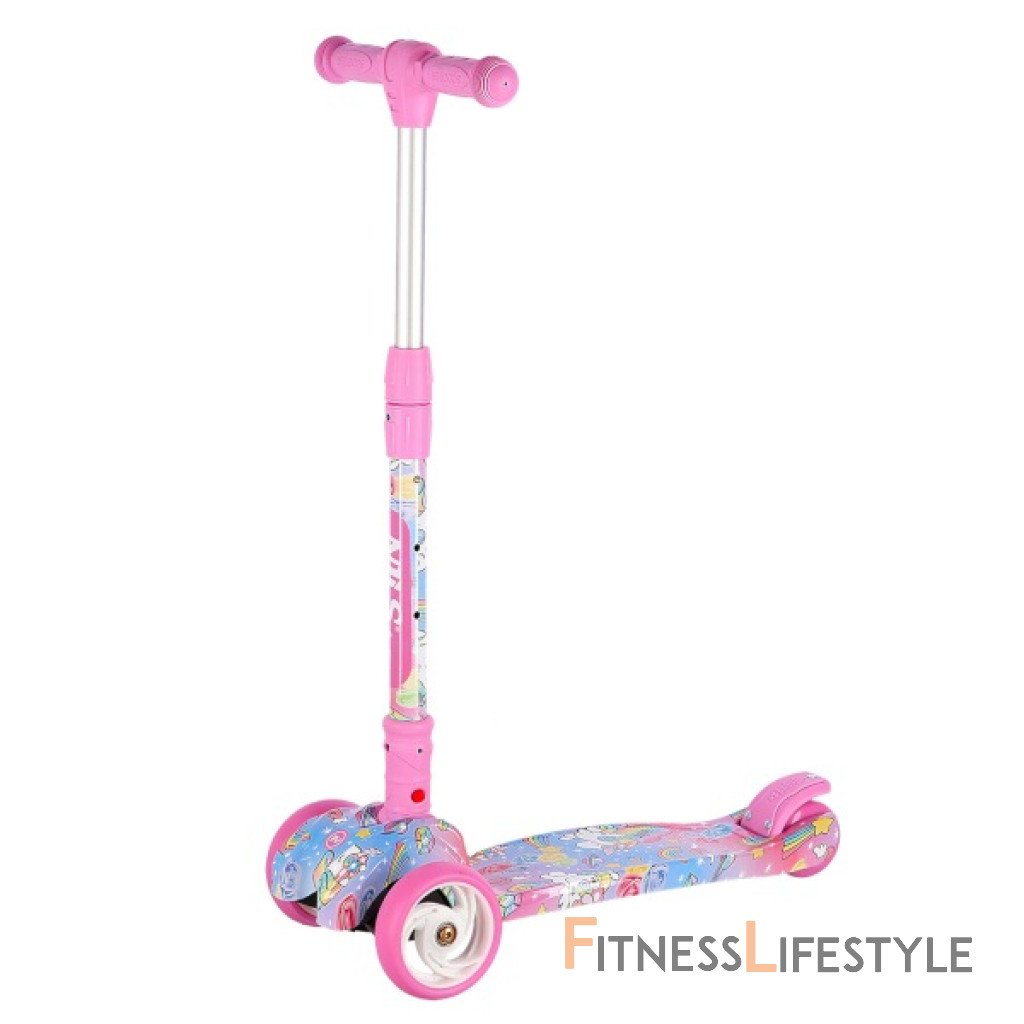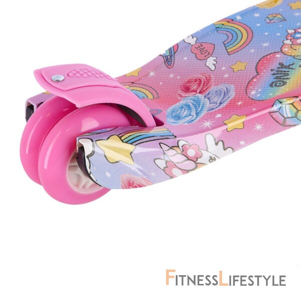 Tri kolieska sú garanciou vysokej stability. Teleskopické riadidlá sú pevné a slúžia primárne na udržanie rovnováhy. Manévrovanie sa vykonáva pomocou prenášania váhy na jednu alebo druhú stranu. Vďaka riadeniu pomocou prenášania váhy je kolobežka maximálne bezpečná a nehrozí jej prevrhnutie. Svietiace kolieska zvyšujú viditeľnosť za šera a pre plynulé otáčanie sú osadené ložiskami ABEC7. Zadné koliesko je zdvojené a pre vyšší komfort z jazdy je uložené v gumovom silentbloku.