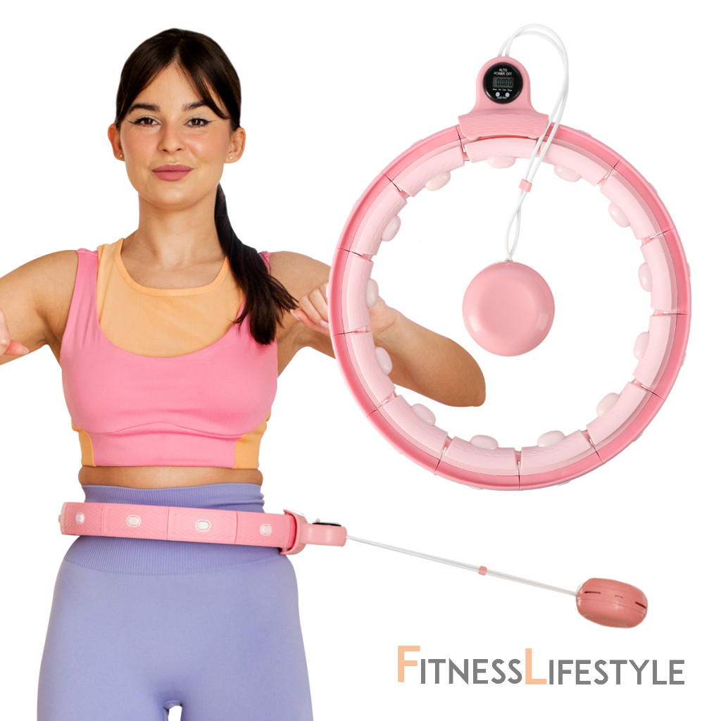 Masážna hula hoop FH02 so závažím a počítadlom ružová | Fitness Lifestyle