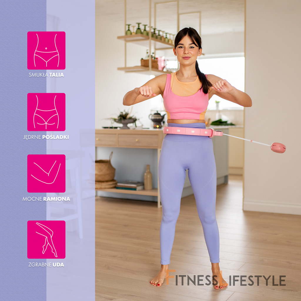 FH02 je hula hop obruč s nastaviteľnou dĺžkou, masážnymi výstupkami a rotujúcim závažím.
