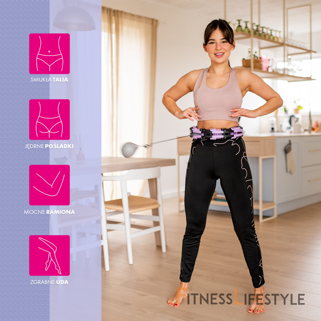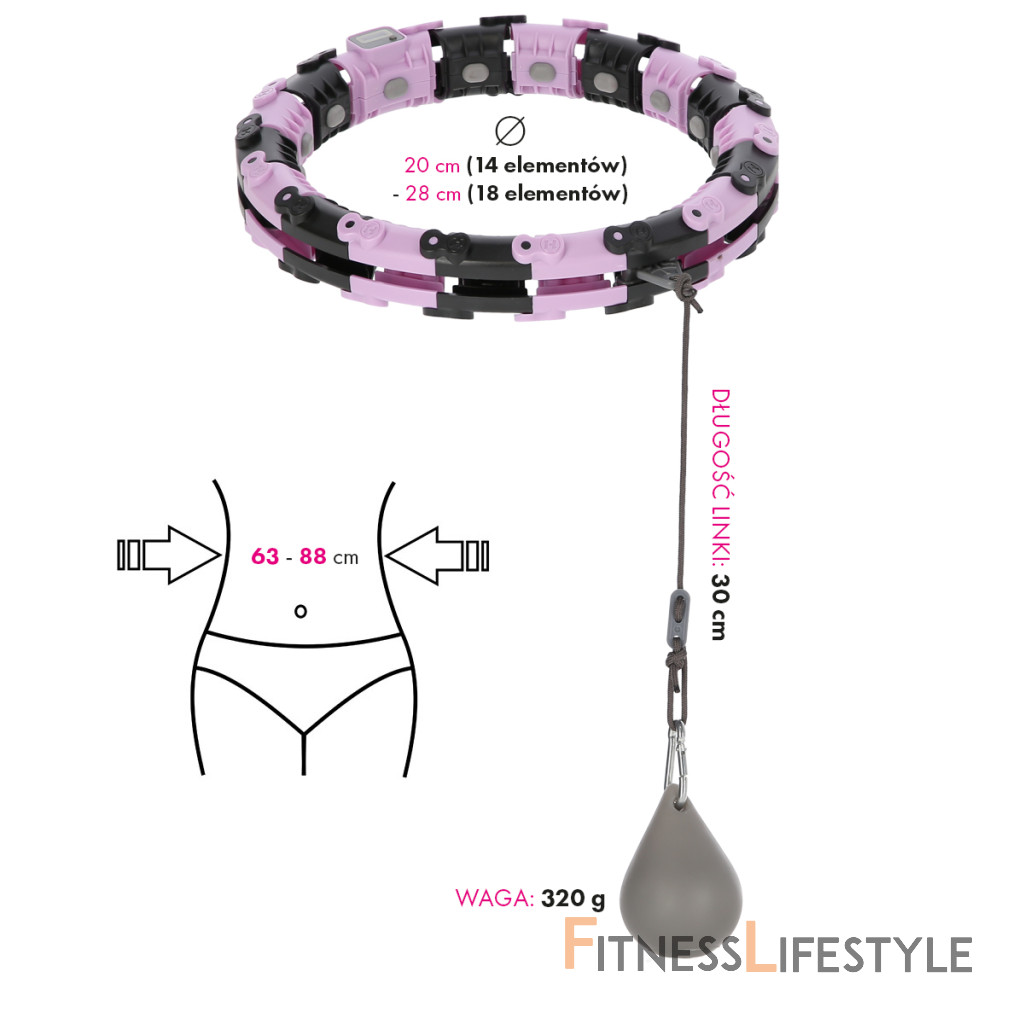 FH03 je hula hop obruč s nastaviteľnou dĺžkou, masážnymi výstupkami a rotujúcim závažím.