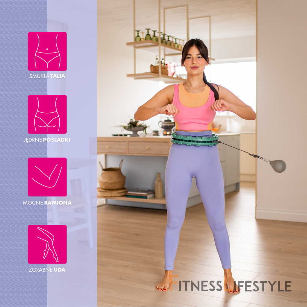 FH03 je hula hop obruč s nastaviteľnou dĺžkou, masážnymi výstupkami a rotujúcim závažím.