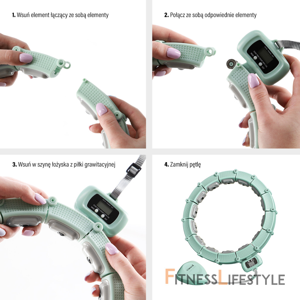 Dĺžka obruče sa nastaví podľa obvodu pása tak, aby bola dostatočne voľná, ale zároveň aby nepadala cez boky. Po nastavení dĺžky sa obruč uzavrie. Závažie sa následne „vrhne“ smerom, do ktorého budeme krútiť boky a začneme tréning. Obruč HHM14 je z vnútornej strany vybavená masážnymi magnetickými výstupkami, ktoré príjemne masírujú oblasť pása. Magnety sú záporne polarizované a ich magnetické pole má pozitívny vplyv na podporu metabolizmu. Intenzitu tréningu ovplyvňuje rýchlosť, akú krútime boky.