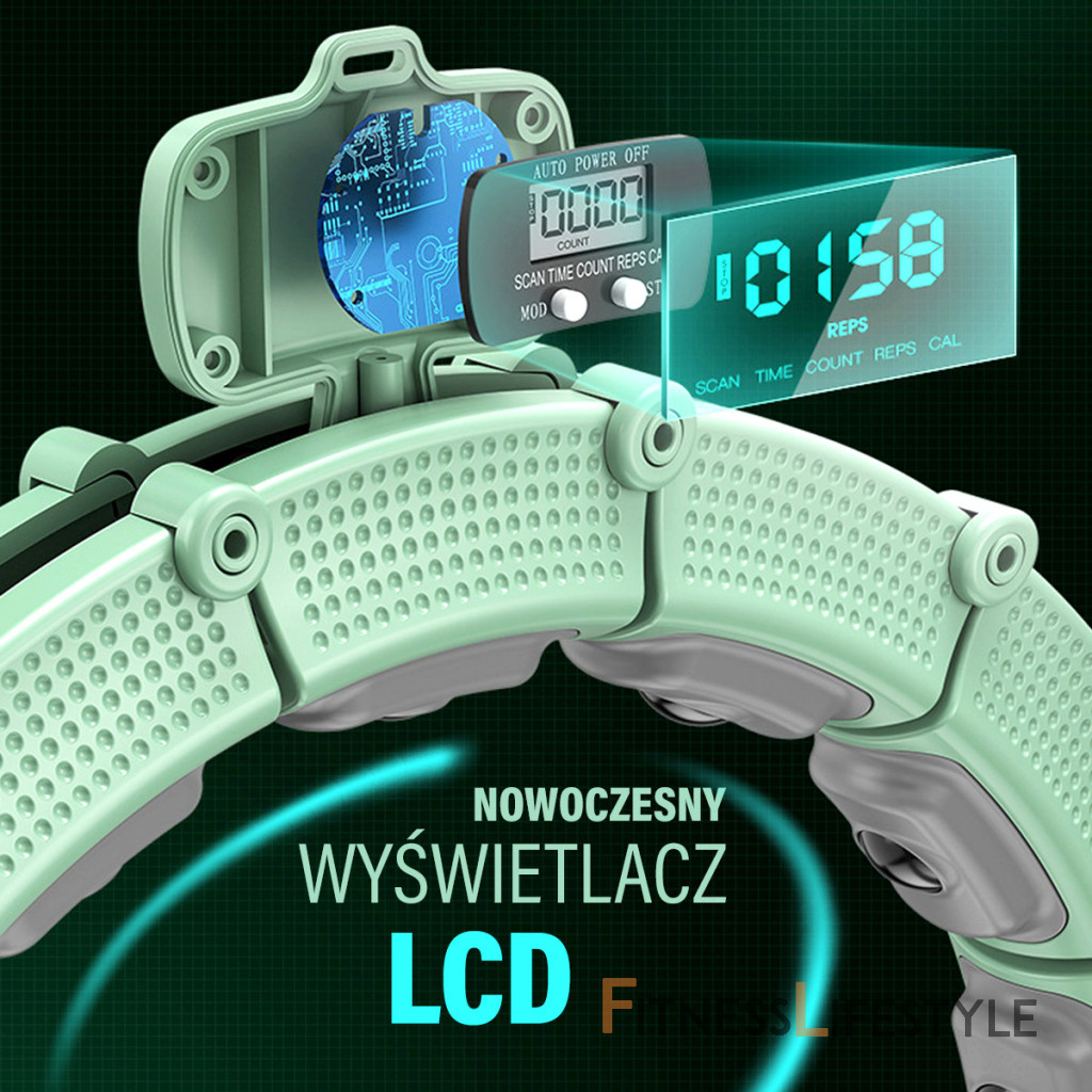 Rozmerný LCD displej umiestnený na kotve zobrazuje informácie o čase tréningu, počte spálených kalórií, počte obkrúženia a rýchlosti krúženia. Údaje je možné použiť na kontrolu tréningu a na sledovanie kondície.