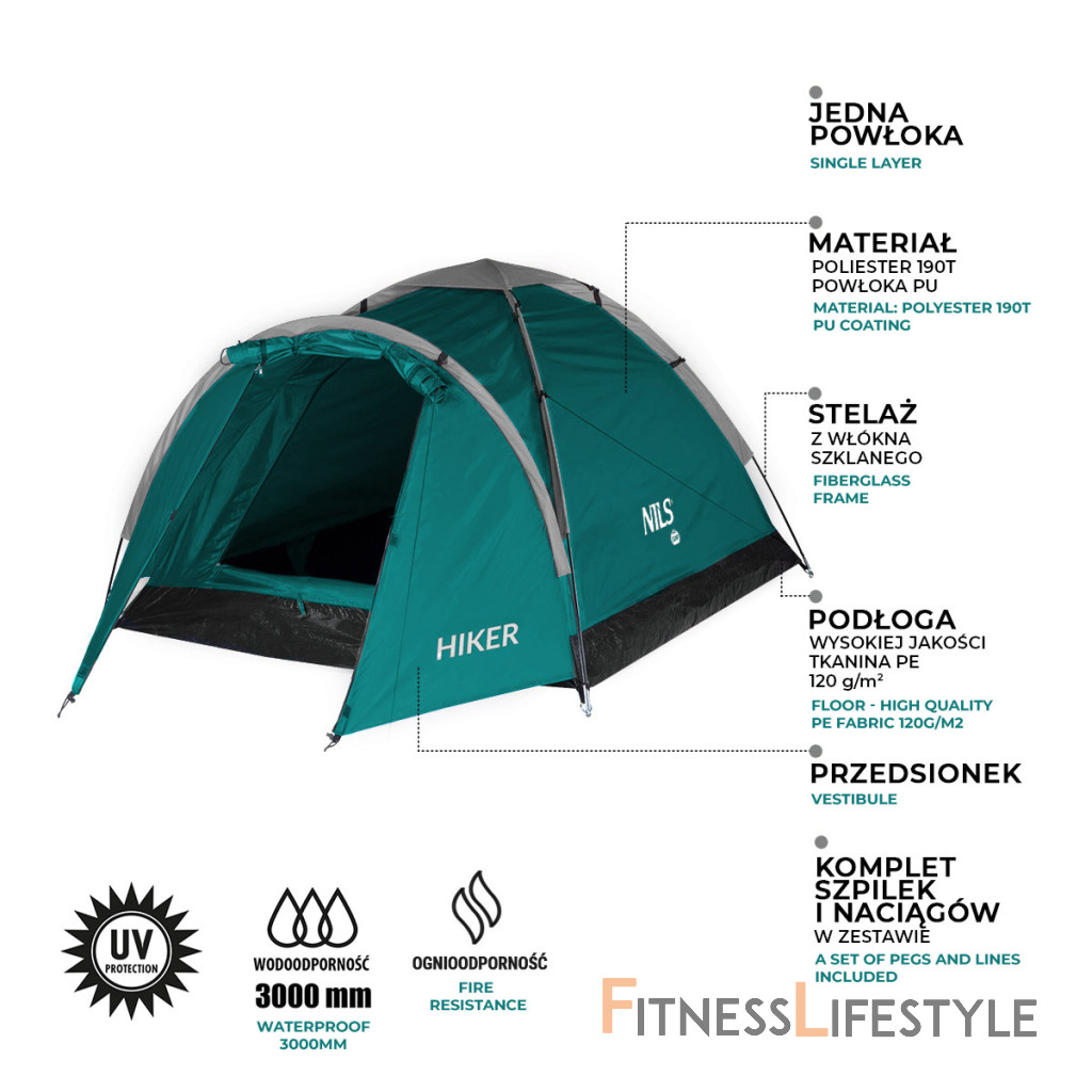 Stan Nils Camp NC6010 Hiker je ideálnou voľbou pre každého, kto si cení aktívnu dovolenku v tábore alebo v prírode. Model turistov je kompaktný a ľahký stan single, ktorý ponúka priestor pre dvoch ľudí a zaisťuje pohodlie aj v náročnejších poveternostných podmienkach. Chodba je ideálna na skladovanie obuvi, batohov a ďalšie turistické vybavenie.