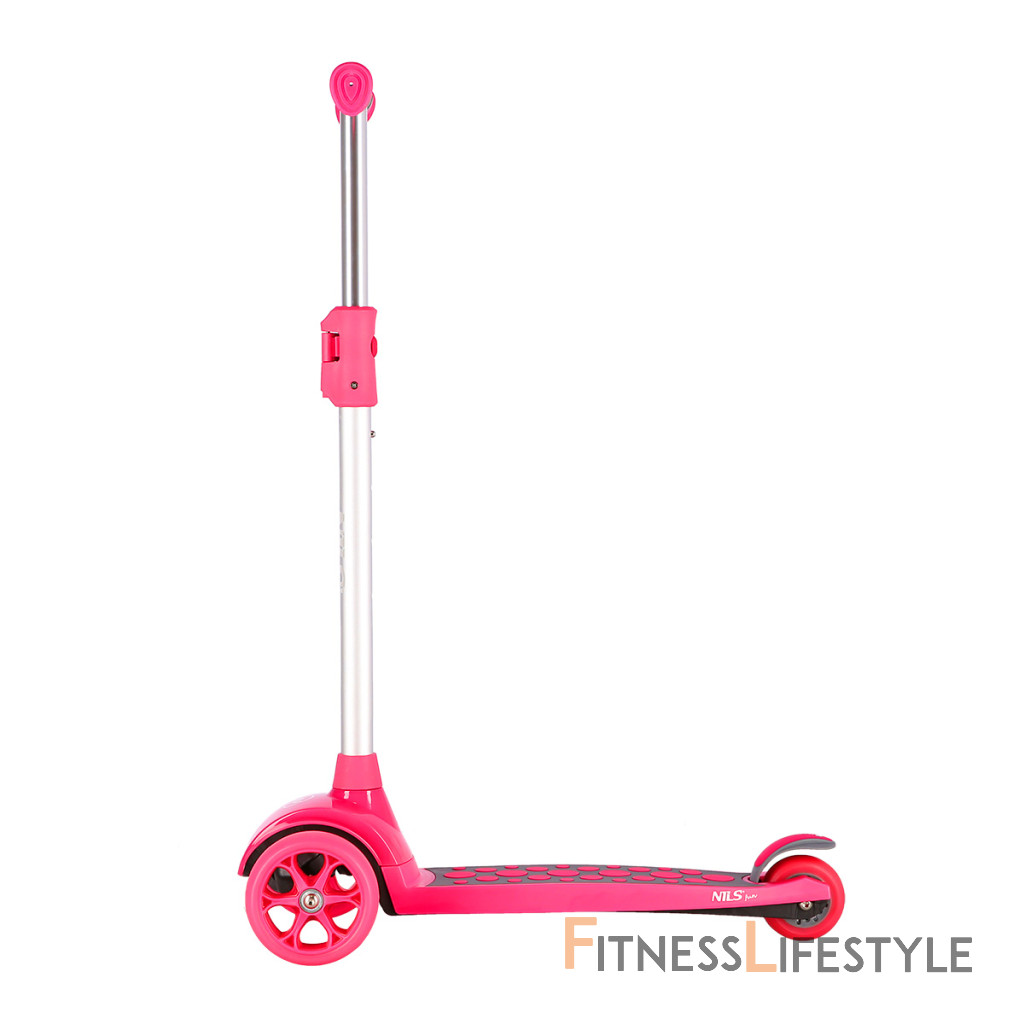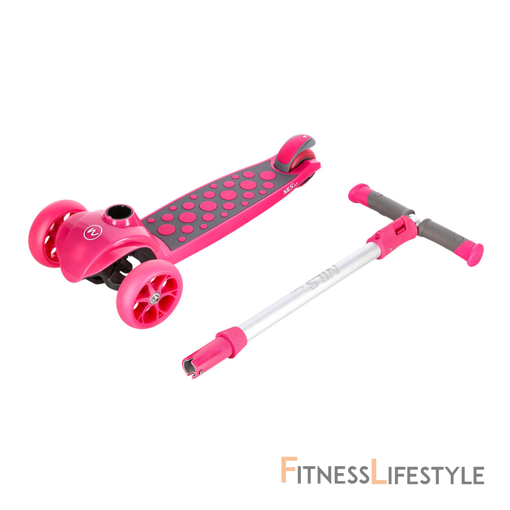 NILS Fun HLB02 je trojkolesová kolobežka pre najmenších. Tri kolieska sú garanciou vysokej stability. Teleskopické riadidlá sú pevné a slúžia primárne na udržanie rovnováhy. Manévrovanie sa vykonáva pomocou prenášania váhy na jednu alebo druhú stranu. Vďaka riadeniu pomocou prenášania váhy je kolobežka maximálne bezpečná a nehrozí jej prevrhnutie. Gripy na riadidlách sú vyrobené z gumy pre istý úchop. Konce gripov sú opatrené zarážkou, ktorá zamedzuje zošmyknutiu dlane z gripu a zároveň dlaň chráni, keď dieťa náhodou zavadí riadidlom o prekážku - napríklad o fasádu domu. Stúpadlo nie je polepené klasickým griptapom, ale gumovou podložkou. Kolieska sú osadené ložiskami ABEC 7 pre plynulú jazdu. Zadný blatník slúži ako nášľapná brzda na bezpečné zastavenie kolobežky. Kolobežka NILS Fun HLB02 má kolieska osadené svietiacimi LED diódami, ktoré slúžia ako zaujímavý, vizuálny prvok, zvyšujú záujem detí av neposlednom rade zvyšujú viditeľnosť kolobežky napríklad za šera. Kolieska svietia automaticky počas ich otáčania. V prípade potreby je možné kolobežku zložiť vybratím riadidiel. Kolobežku najlepšie využijete počas jazdy po rovnom, spevnenom povrchu. Parametre: Upozornenie:
