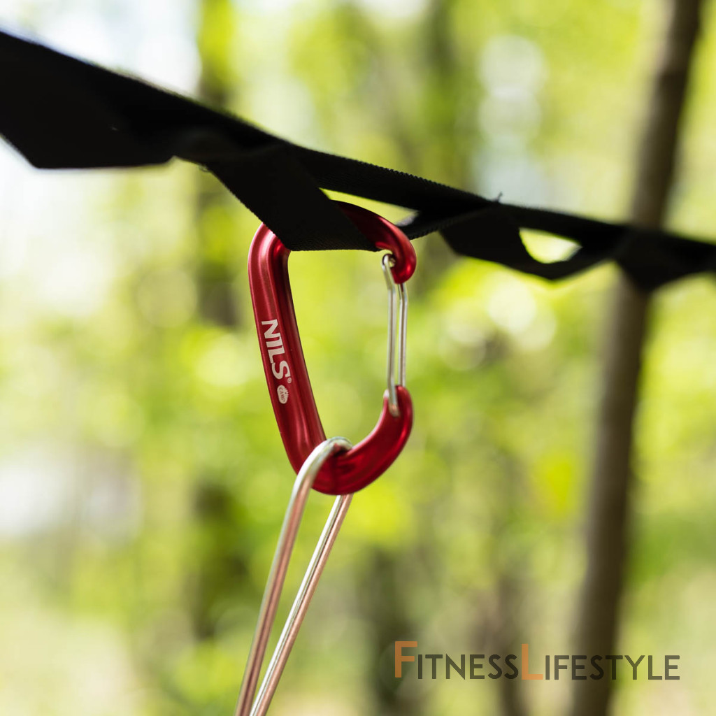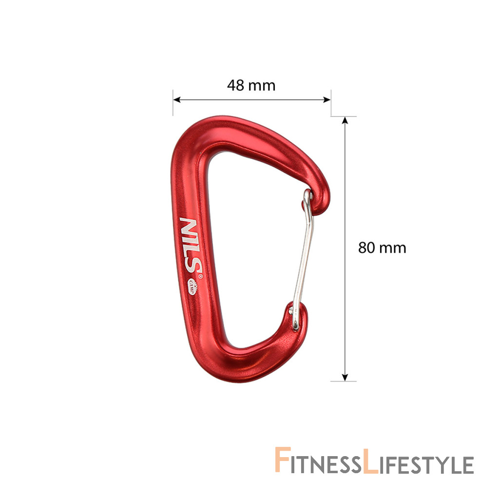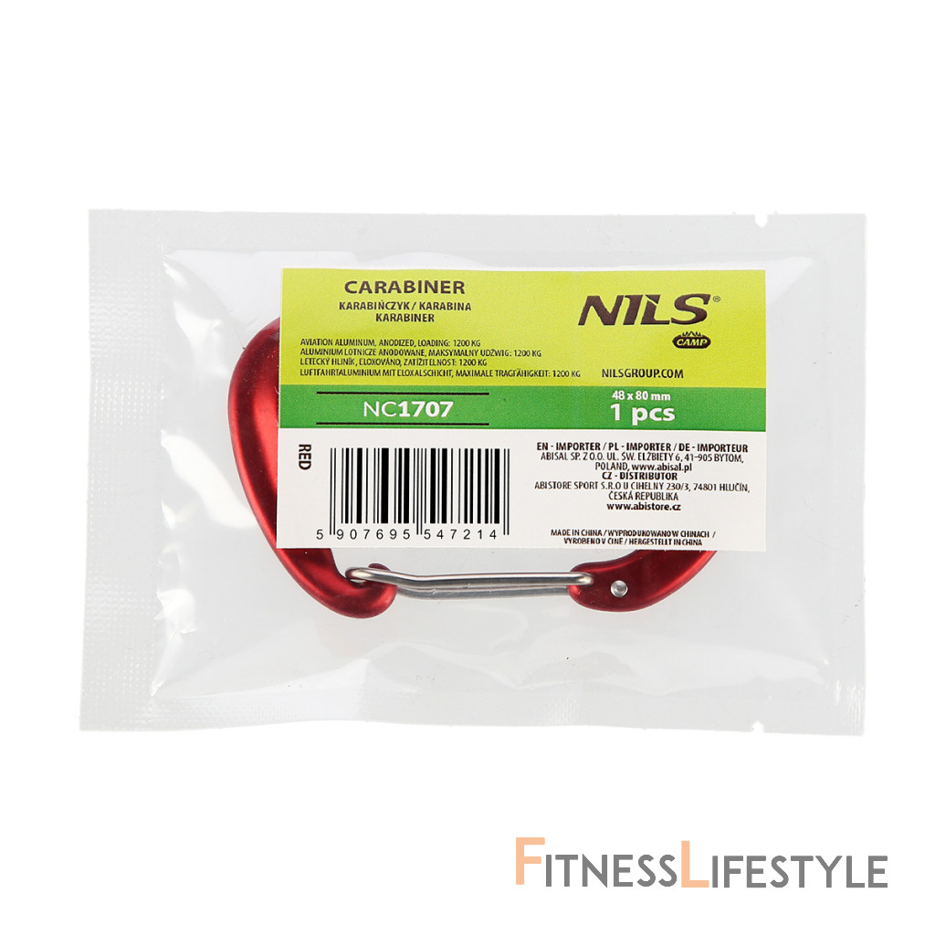 Hliníková karabína NILS Camp NC1707 s nosnosťou 1.200 kilogramov. Karabina je vyrobená z hliníkového, eloxovaného profilu. Eloxácia zamedzuje oxidovaniu povrchu a karabínu tak môžete používať aj pri vonkajších aktivitách. NC1707 má drôtený zámok, ten oproti klasickému zámku zaberá menej priestoru, karabínu je možné viac "otvoriť" a lepšie sa s ňou manipuluje. Nosnosť karabíny, pri plne uzavretom zámku, je 1.200 kg a je možné ju teda použiť aj na náročnejšie aplikácie, ako je zavesenie hamaky, hojdačky, boxovacieho vreca... Parametre: Upozornenie: