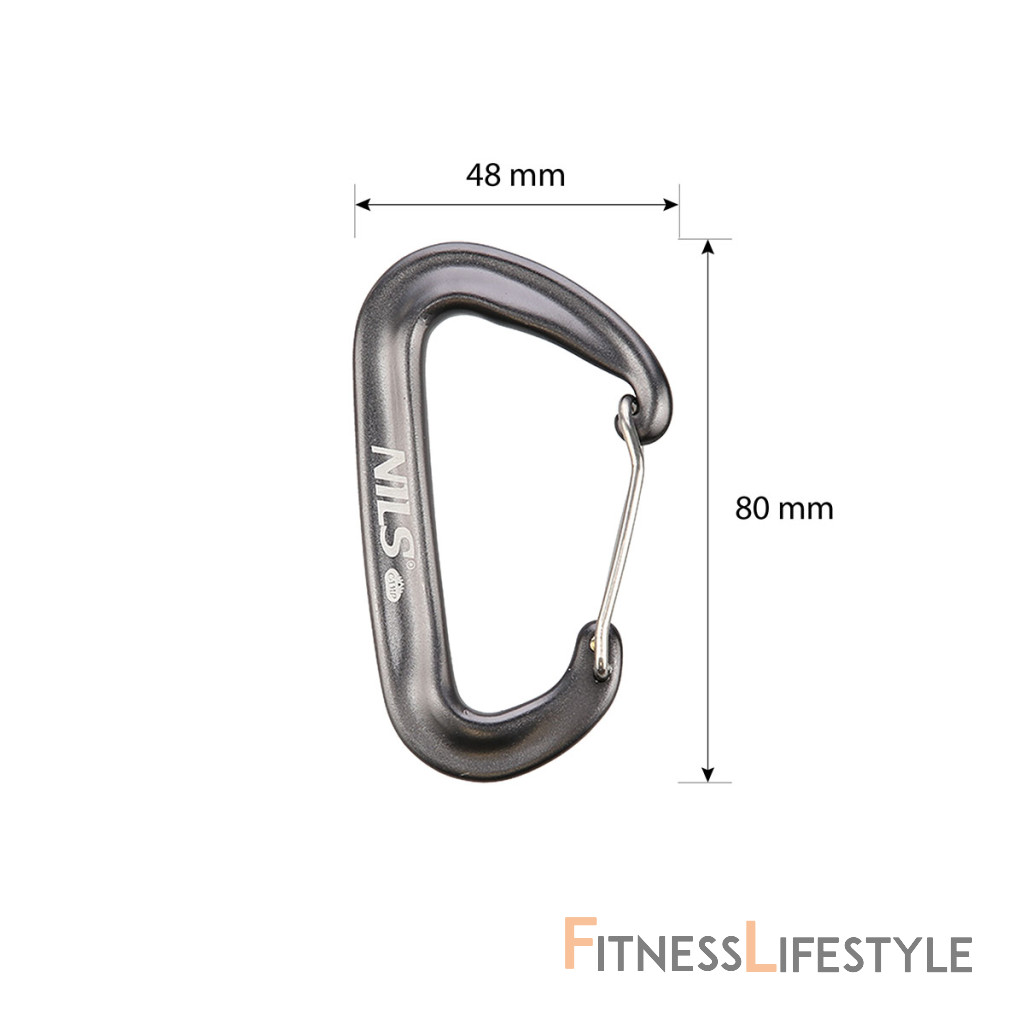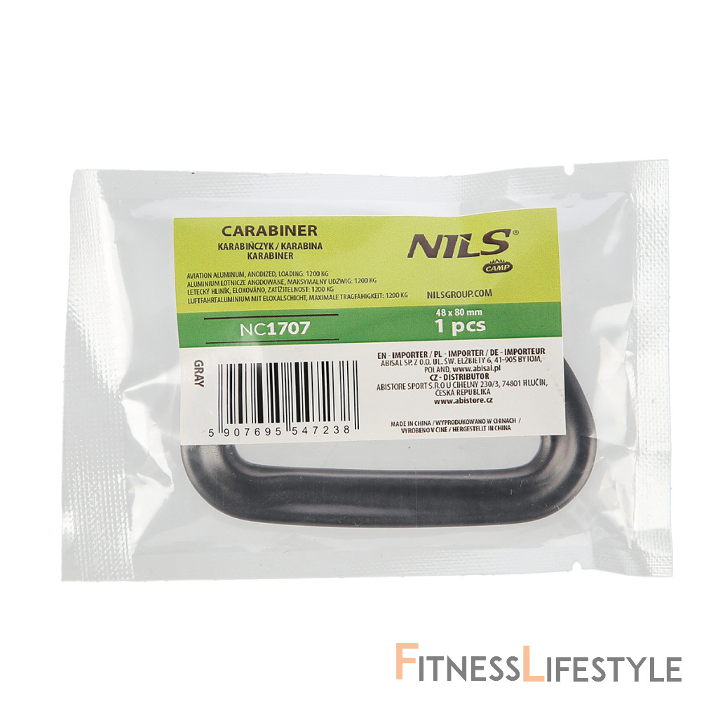 Hliníková karabína NILS Camp NC1707 s nosnosťou 1.200 kilogramov. Karabina je vyrobená z hliníkového, eloxovaného profilu. Eloxácia zamedzuje oxidovaniu povrchu a karabínu tak môžete používať aj pri vonkajších aktivitách. NC1707 má drôtený zámok, ten oproti klasickému zámku zaberá menej priestoru, karabínu je možné viac "otvoriť" a lepšie sa s ňou manipuluje. Nosnosť karabíny, pri plne uzavretom zámku, je 1.200 kg a je možné ju teda použiť aj na náročnejšie aplikácie, ako je zavesenie hamaky, hojdačky, boxovacieho vreca... Parametre: Upozornenie: