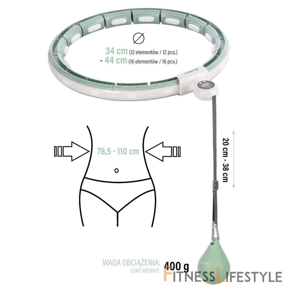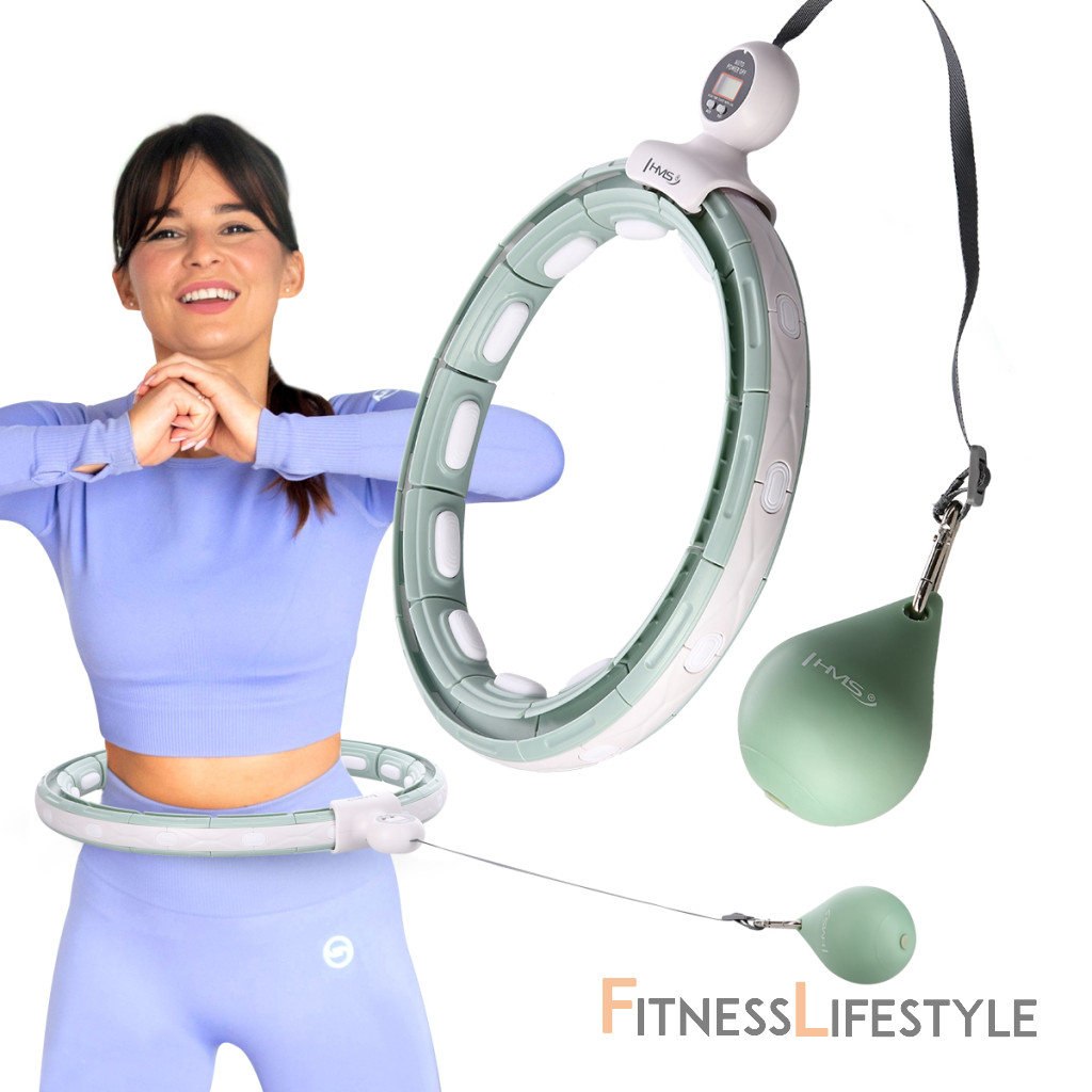 HMS HHM15 je hula hoop obruč s nastaviteľným obvodom, masážnymi magnetickými výstupkami, rotujúcim závažím a počítadlom.