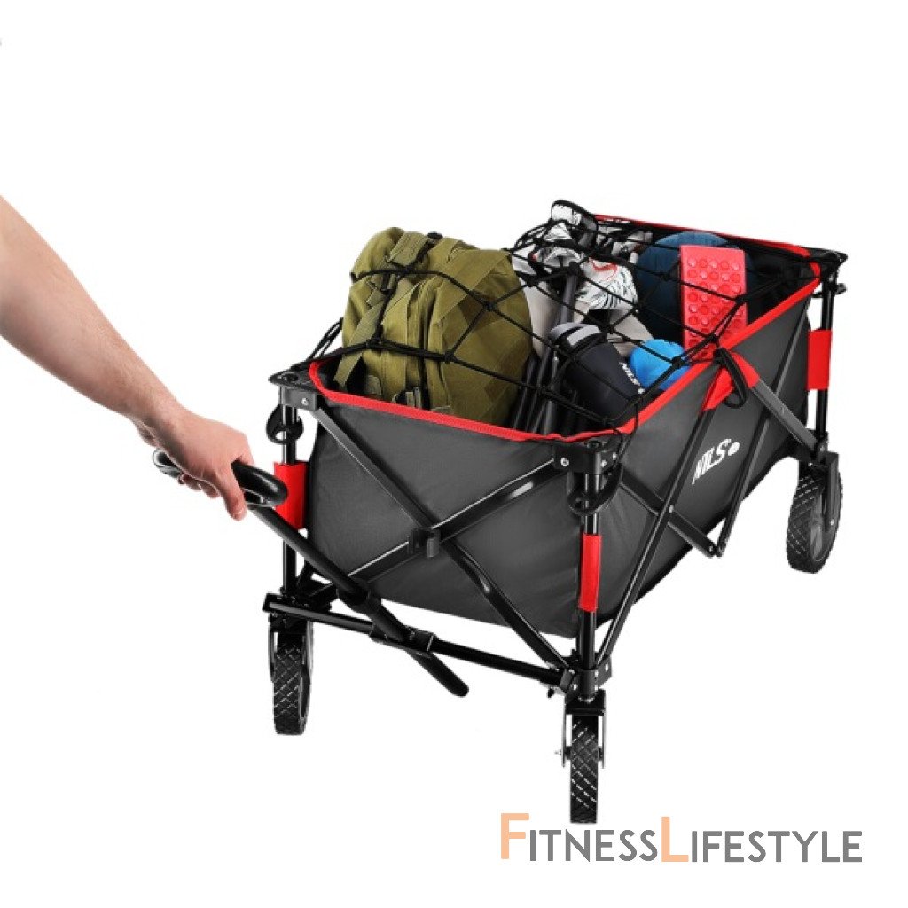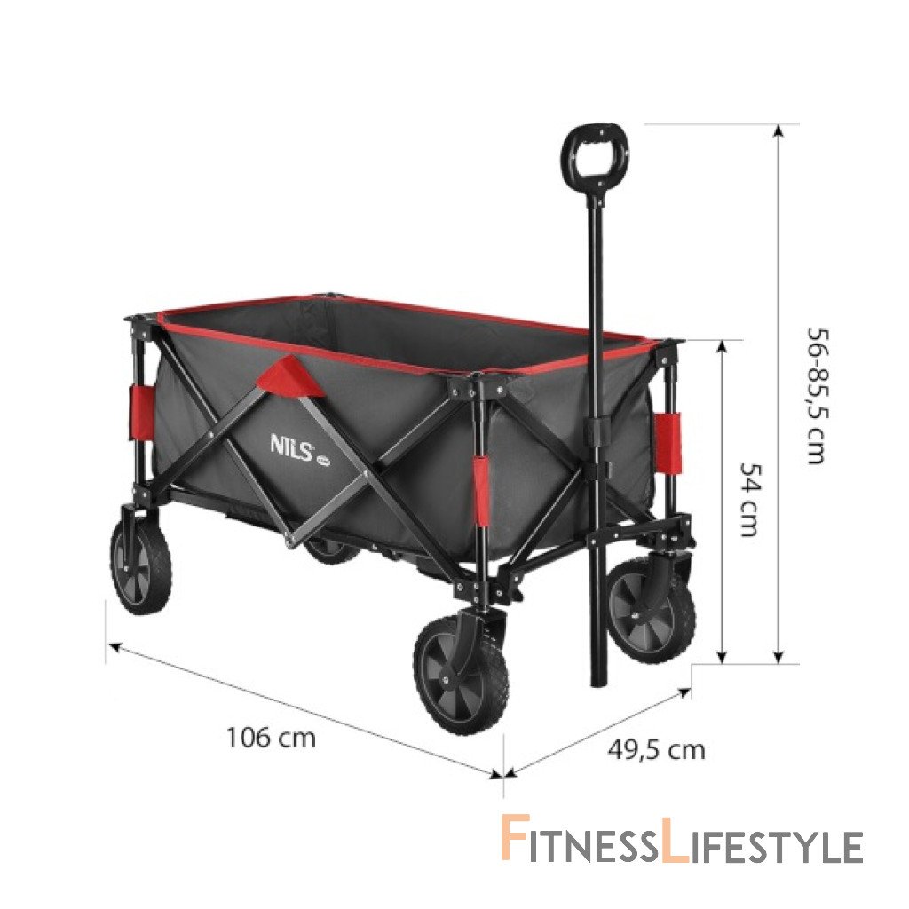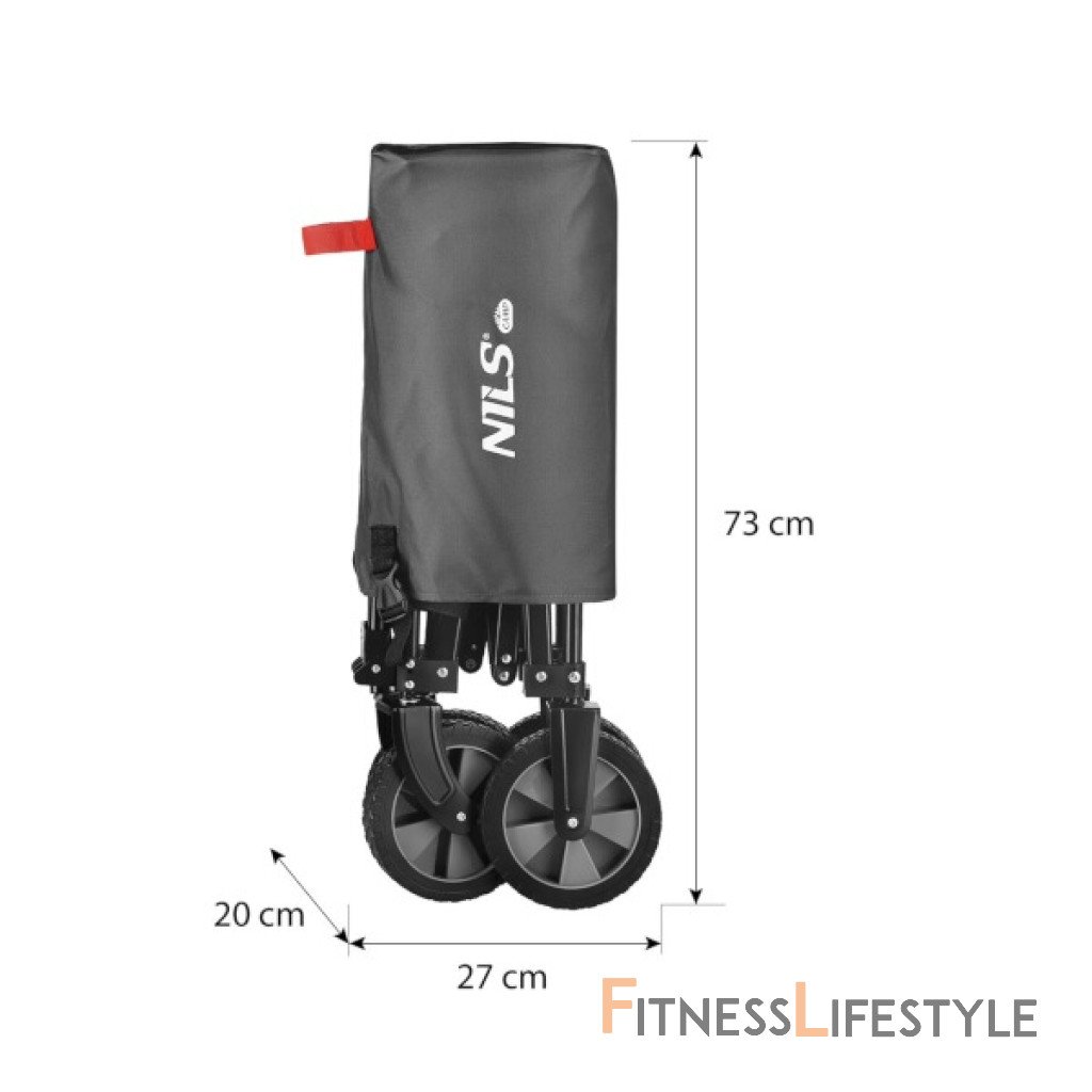 Skladací, kempingový vozík NILS Camp NC1603 bol navrhnutý s ohľadom na pohodlie, praktickosť a štýl, aby vám zaistil nezabudnuteľné chvíle pri kempovaní, pobyte na horách, na pláži pri mori alebo počas pikniku v parku. Vozík je ľahký, ľahko ovládateľný, a predovšetkým priestranný, pojme všetko, čo potrebujete pre pohodlný pobyt v prírode. Teraz máte všetko potrebné doslova na dosah ruky! Priestor pre všetko vybavenie Vozík má rozmery 106 x 50 x 56 centimetrov a objem vozíka je 125 litrov. Vozík NC1603 je teda dostatočne rozmerný aby zvládol previezť všetko vybavenie, či už ide o stan, spacáky a batoh, alebo napríklad o piknikový kôš, piknikovú deku a chutný obed. Skladacia konštrukcia a vyberateľná podlaha Vďaka jednoduchému a rýchlemu spôsobu skladania je vozík NC1603 mimoriadne praktický a ľahko sa používa. Je možné ho rýchlo zložiť a rozložiť, čo je mimoriadne užitočné pri cestovaní vlakom, lietadlom, karavanom alebo autom. Dno NC1603 je tvorené podlahou, ktorá tvorí rovnú plochu a zaisťuje rovnomerné rozloženie hmotnosti nákladu. Po vybratí podlahy z vozíka je možné NC1603 zložiť do rozmeru 20 x 27 x 73 centimetrov. Podlážku tvoria 4 panely, je možné ju zložiť do rozmeru 42 x 20 cm a uložiť do vrecka v ochrannom, transportnom obale. Ochranný obal na jednoduché prenášanie Na zložený vozík je možné nasadiť dodávaný ochranný obal, ktorý sa zaistí pretiahnutím nylonového popruhu cez vidlicu koliesok a zaistením plastovou prackou. Na jednej strane ochranného obalu sa nachádza popruh na jednoduché prenášanie zloženého vozíka jednou rukou. Jednoduché a pohodlné ovládanie NC1603 má otočné predné kolieska a teleskopickú nastaviteľnú rukoväť, ktorú je možné použiť v dvoch rovinách - zvisle na tlačenie vozíka av šikmej na ťahanie vozíka, čo dohromady umožňuje ľahké manévrovanie, a to aj na nerovnom teréne alebo v piesku, kde je vozík stabilný a plne pod kontrolou. Spoľahlivá konštrukcia Oceľovú konštrukciu tvorí skladací rám, ktorá je aj pod dnom vozíka. Robustné prevedenie zaisťuje nielen odolnosť vozíka, ale aj bezpečnosť vášho vybavenia. Pre úplné zabezpečenie nákladu odporúčame vybaviť vozík prídavnou sieťou. Parametre: Upozornenie: