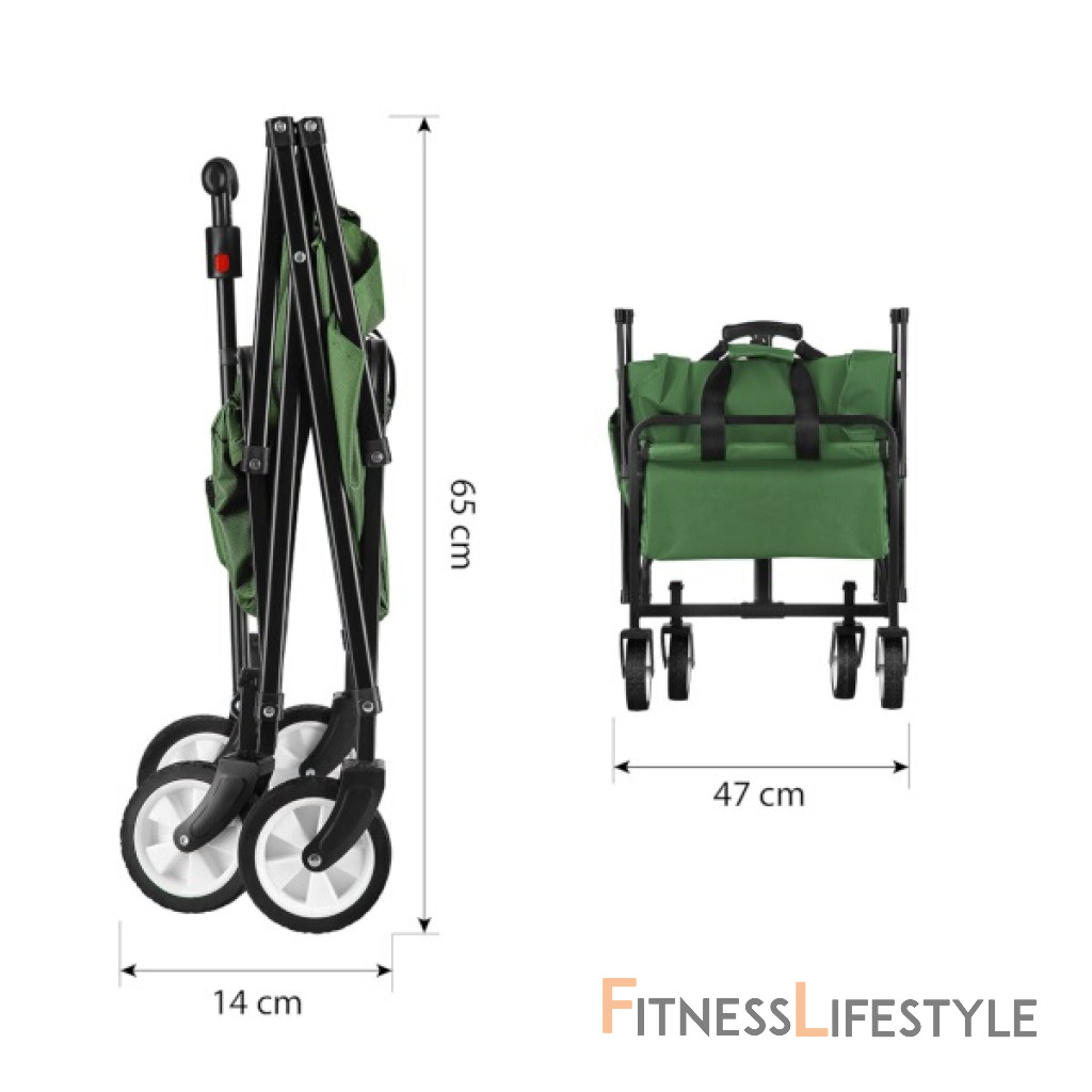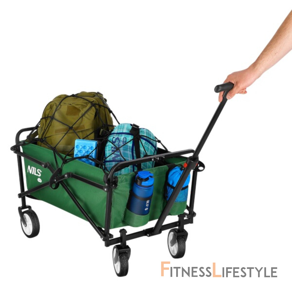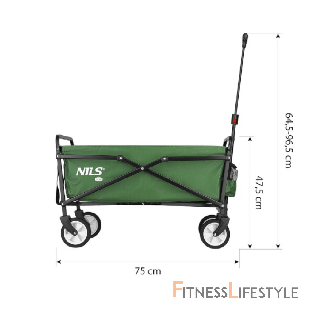 Skladací, kempingový vozík NILS Camp NC1602 bol navrhnutý s ohľadom na pohodlie, praktickosť a štýl, aby vám zaistil nezabudnuteľné chvíle pri kempovaní, pobyte na horách, na pláži pri mori alebo počas pikniku v parku. Vozík je ľahký, ľahko ovládateľný, a predovšetkým priestranný, pojme všetko, čo potrebujete pre pohodlný pobyt v prírode. Teraz máte všetko potrebné doslova na dosah ruky! Priestor pre všetko vybavenie Vďaka jednoduchému a rýchlemu spôsobu skladania je vozík NC1602 mimoriadne praktický a ľahko sa používa. Je možné ho rýchlo zložiť a rozložiť jediným pohybom, čo je mimoriadne užitočné pri cestovaní vlakom, lietadlom, karavanom alebo autom. Zložený vozík má rozmery 46 x 65 x 20 centimetrov a pri sklopení madla je výška iba 48 centimetrov. Zložený vozík je možné prenášať pomocou popruhov spojených mažetou so suchým zipsom. Po rozložení sú rozmery 75 x 46 x 95 centimetrov (výška bez madla 48 cm) a objem vozíka je 75 litrov. Vozík NC1602 je teda dostatočne rozmerný aby zvládol previezť všetko vybavenie, či už ide o stan, spacáky a batoh, alebo napríklad o piknikový kôš, piknikovú deku a chutný obed. V prednej časti vozíka sú 2 sieťované vrecká, do ktorých sa pohodlne zmestia napríklad fľaše s vodou. Jednoduché a pohodlné ovládanie NC1602 má otočné predné kolieska a teleskopickú nastaviteľnú rukoväť, ktorú je možné použiť v dvoch rovinách - zvisle na tlačenie vozíka av šikmej na ťahanie vozíka, čo dohromady umožňuje ľahké manévrovanie, a to aj na nerovnom teréne alebo v piesku, kde je vozík stabilný a plne pod kontrolou. Spoľahlivá konštrukcia Oceľovú konštrukciu tvorí skladací rám po stranách a pod dnom vozíka. Robustné prevedenie zaisťuje nielen odolnosť vozíka, ale aj bezpečnosť vášho vybavenia. Pre úplné zabezpečenie nákladu odporúčame vybaviť vozík prídavnou sieťou. Parametre: Upozornenie: