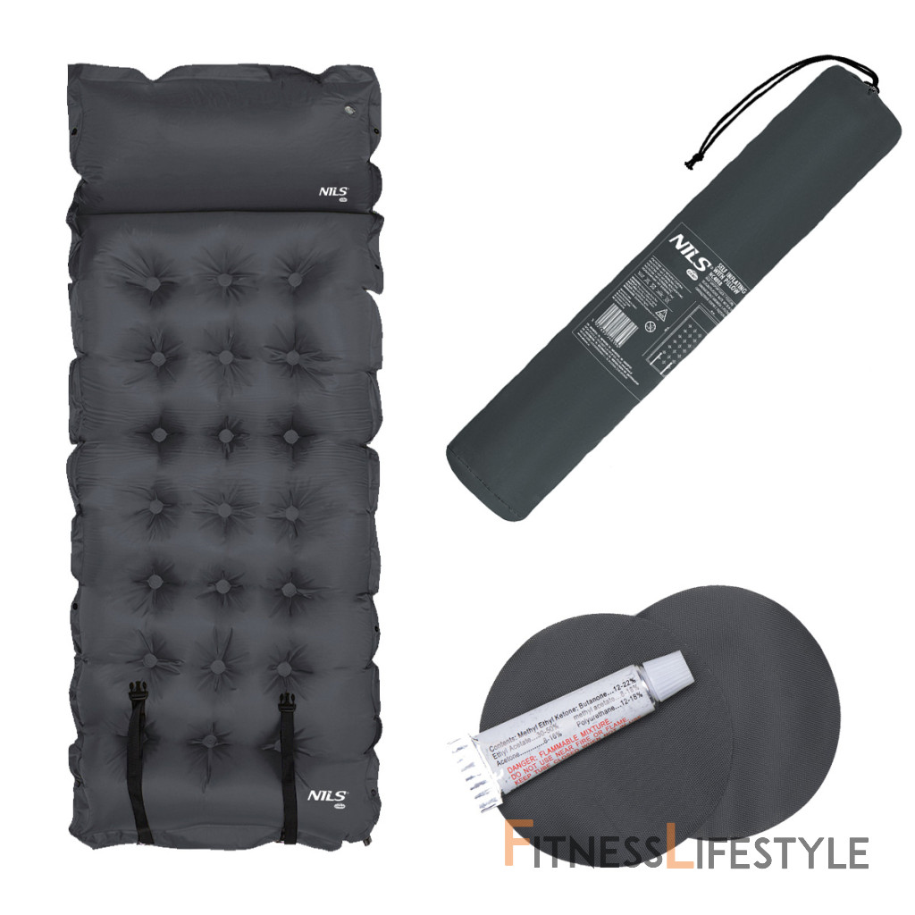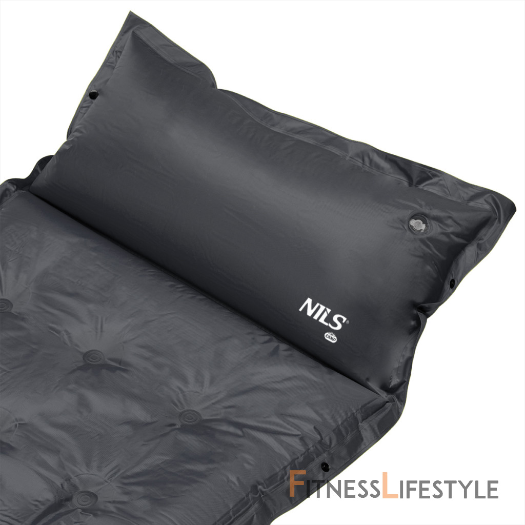 Samonafukovacia karimatka NILS CAMP NC4018 zaistí kvalitný spánok počas kempovania a dovoleniek pod stanom. Podložka je ale vhodná aj k vode a všade tam, kde si chcete príjemne poležať. Samonafúknutie zaisťuje vnútorný, penový materiál s otvorenými pórmi. Po povolení ventilu do seba nasáva vzduch a dostáva sa tak do pôvodného stavu. Záverom je ešte potrebné podložku dofúknuť na požadovanú tvrdosť. Skladanie sa vykonáva otvorením ventilu a zrolovaním od opačnej strany, než je ventil. Karimatku potom zaistíme remienkami s prackami a vložíme do dodávaného vaku. Na model NC4018 bol použitý veľmi odolný polyester 190T potiahnutý vrstvou PVC, táto kombinácia zaisťuje vysokú odolnosť a karimatka sa dá položiť aj na nerovný povrch. Lemy karimatky sú opatrené cvočkami, ktoré umožňujú spojiť viac matracov do jednej, veľkej plochy, toto sa hodí napríklad na vyplnenie podlahy v stane. Vankúšik nie je odnímateľný a oproti karimatke nie je vyplnený penou a je potrebné ho celý nafúknuť. Súčasťou balenia je aj opravná sada, ktorá sa hodí v prípade poškodenia.