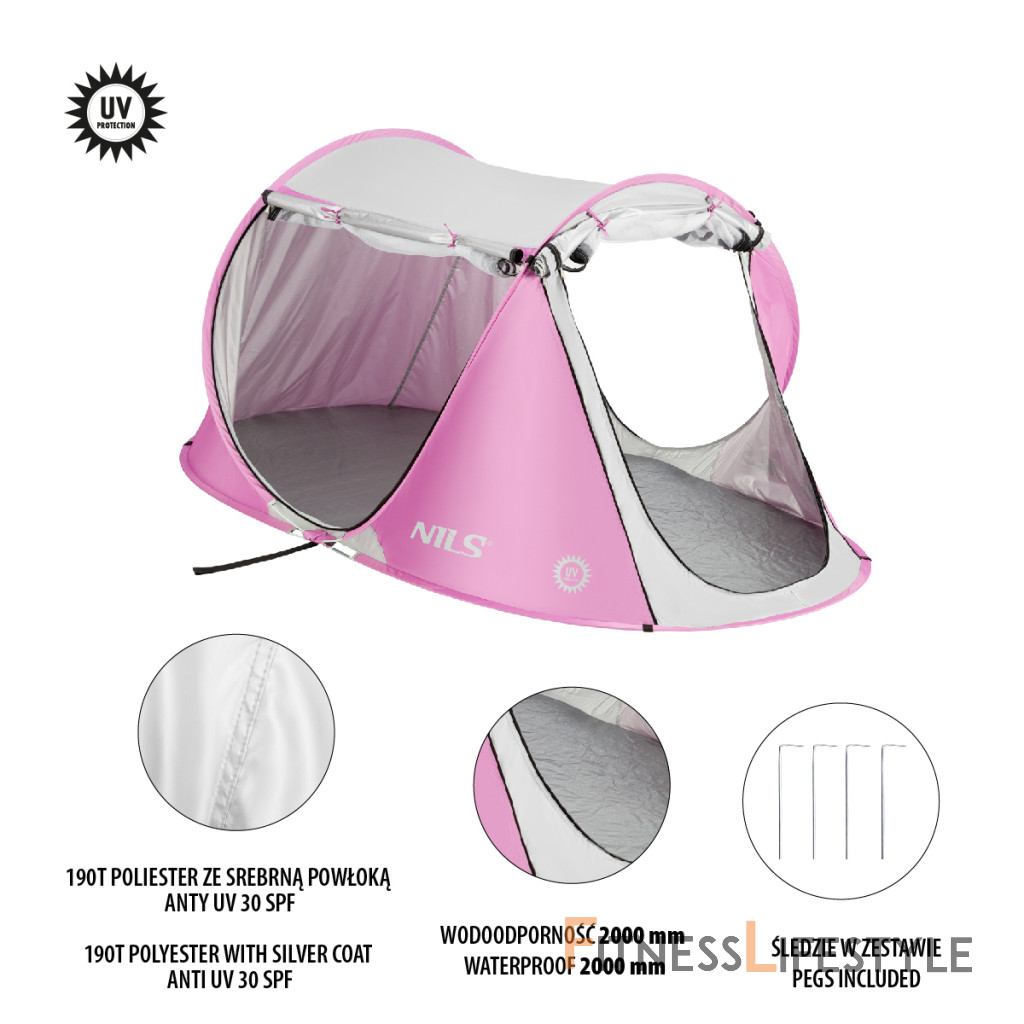 Samorozkladací plážový stan NILS Camp NC3043 od spoločnosti je ideálnym riešením pre každého milovníka pobytov pri vode. Stan NC3043 sa sám rozloží, je odolný a funkčný, ale hlavne vás ochráni pred slnečnými lúčmi, poskytne tieň a zároveň vás ochráni pred vetrom. Model NC3043 má rozmery 220 x 120 x 95 cm, takže je veľmi priestranný. Do stanu sa vchádza hneď tromi vstupmi, ktoré sú opatrené ako moskytiérou, tak plachtou na zips. Hlavnou výhodou modelu NC3043 je, že sa sám rozkladá. Stačí ho vybrať z prepravného vaku a položiť na zem. Behom niekoľkých sekúnd je stan pripravený. Vďaka priloženým kolíkom sa stan ani nepohne a nehrozí, že by ho odfúkol vietor. Stan NC3043 je vyrobený z kvalitných materiálov. Podlážka je vodeodolná, takže mokrý piesok a tráva nebude problém. Siete vo vchodoch zaisťujú cirkuláciu vzduchu. Stan má tiež povrchovú úpravu chrániacu pred UV žiarením. Stan NC3043 je priestranný, ale v zloženom stave zaberá veľmi málo miesta. Zmestí sa do praktickej tašky, ktorá je súčasťou balenia a ktorá chráni výrobok a uľahčuje jeho prepravu. Parametre: Upozornenie:
