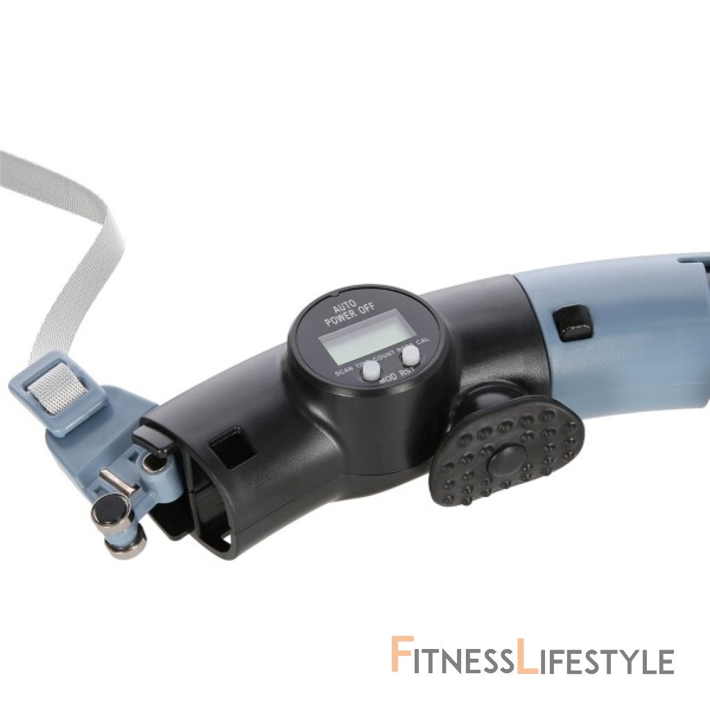 HMS FH07 je hula hop obruč s nastaviteľnou dĺžkou, masážnymi výstupkami a rotujúcim závažím. Konštrukcia masážneho hula hoopu Konštrukcia sa skladá z 20-tich rovnakých dielov ktoré sa spájajú pomocou plastových tlačidiel. Aby šla obruč uzavrieť, tak je potrebné použiť najmenej 14 dielov. Jednotlivé diely v sebe skrývajú koľajnicu, do ktorej sa pred uzavretím zasunie kotva, ktorá je osadená štyrmi kolieskami s guličkovými ložiskami. Ku kotve je, pomocou dĺžkovo nastaviteľného remienka, pripojené závažie s hmotnosťou 320 gramov. Povrázok je možné nastaviť na dĺžku 14 až 30 centimetrov, zmenou dĺžky povrázku sa nastavuje výsledná odstredivá sila závažia - čím dlhší povrázok, tým "ťažšie" bude závažie. Tréning a masáž zároveň Každý diel FH07 je z vnútornej strany vybavený masážnym klobúčikom, tie príjemne masírujú oblasť pása, tým sa pokožka prekrvuje a dochádza k narušovaniu a odbúravaniu tukového tkaniva. Používanie Dĺžka obruče sa nastaví podľa obvodu pása tak, aby bola dostatočne voľná, ale zároveň aby nepadala cez boky. Model FH07 je vhodný pre obvod pása od 72 do 130 centimetrov. Po nastavení dĺžky sa do koľajnice vloží kotva so závažím a obruč sa uzavrie. Závažie sa následne „vrhne“ smerom, do ktorého budeme krútiť boky a začneme tréning. Intenzitu tréningu ovplyvňuje rýchlosť, akú krútime boky. Počítač s LCD displejom a jeho funkcie LCD displej umiestnený na hlavnom diele obruče zobrazuje informácie o čase tréningu a počte obkrúženia. Údaje je možné použiť na kontrolu tréningu a na sledovanie kondície. Počítač je napájaný vstavanou, gombíkovou batériou. Pravidelným používaním HMS FH07: Jednotlivé diely obruče sú vyrobené z kvalitného PVC a ABS. Parametre: Upozornenie: