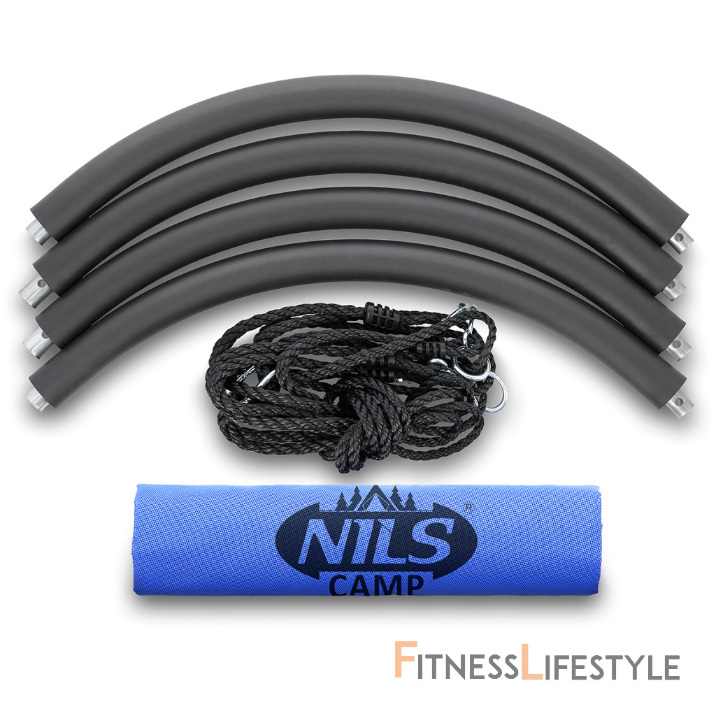 Rám s priemerom 110 centimetrov je vyrobený z oceľovej guľatiny s priemerom 25 milimetrov, na ktoré je pre maximálne bezpečie nalepená vysoká vrstva PE peny. Textilný poťah modelu NB5035 je maximálne odolný voči povětrnostím vplyvom ako je dážď a sneh, hniezdo tak nemusíte schovávať keď práve začne pršať. Nosná, polyetylénová lanká majú priemer 10 milimetrov a dĺžku 180 cm. Keď tieto vlastnosti skombinujeme tak získame priestrannú hojdačku s nosnosťou 150 kilogramov, na ktoré sa vybláznia aj viac detí naraz.