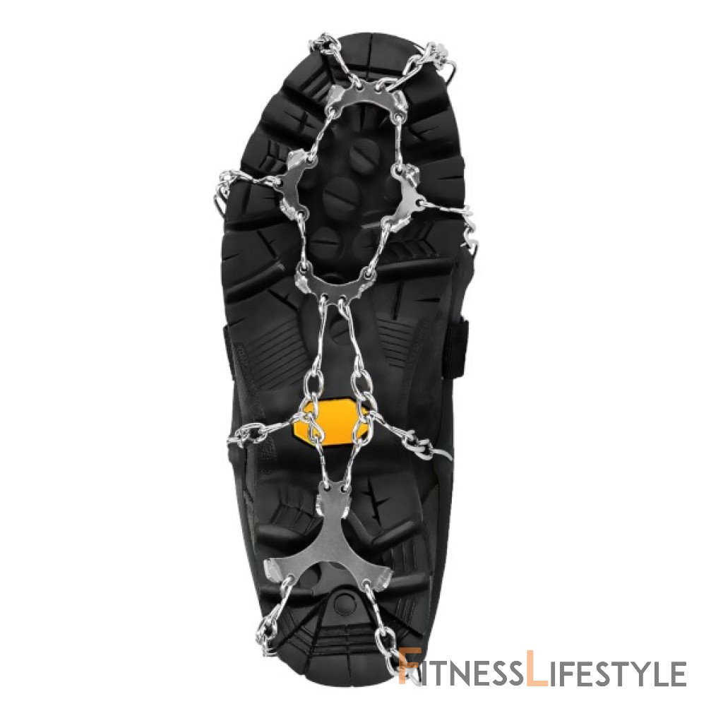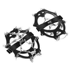 NILS Camp NC1717 sú reťazové nesmeky - protišmykové návleky na topánky, ktoré poskytujú skvelú priľnavosť na klzkom povrchu pokrytom ľadom alebo blatom. Sú tiež ideálne na náročnú, horskú turistiku alebo na zľadovatelné chodníky v meste. NC1717 sa veľmi ľahko nasadzujú, takže výrobok je určený všetkým bez rozdielu veku. Model NC1717 má na spodnej strane 12 hrotov z nerezovej ocele. Hroty majú výšku 16 milimetrov a sú spojené retiazkami. Horná časť návlekov je naopak vyrobená z robustného a pružného TPE, vďaka čomu ich používateľ môže ľahko prispôsobiť svojej obuvi. Nešmýky sa na topánkach zaisťujú pomocou nylonových remienkov so suchým zipsom. Nesmeky sú dodávané v transportnom obale. Parametre: Upozornenie:
