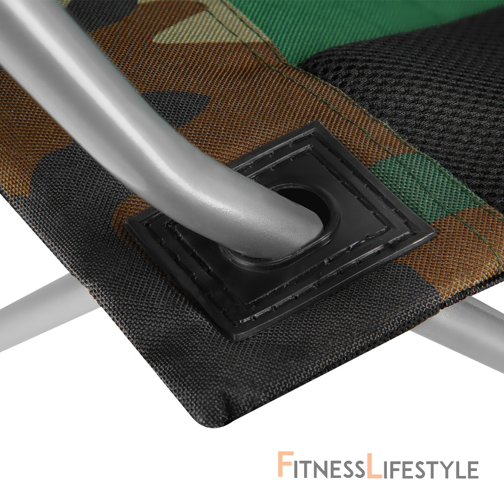 Je to univerzálna stolička, ktorá stojí v akýchkoľvek podmienkach a terénoch. Jeho stabilita je spôsobená pevnými profilmi ocele s priemerom 16 mm. Vďaka robustnému dizajnu a polyesteru v 600D Oxford, ktorý je veľmi odolný, má kreslo kreslo až 130 kg. Doplnok sú protišlipové nohy, ktoré bránia posunu.