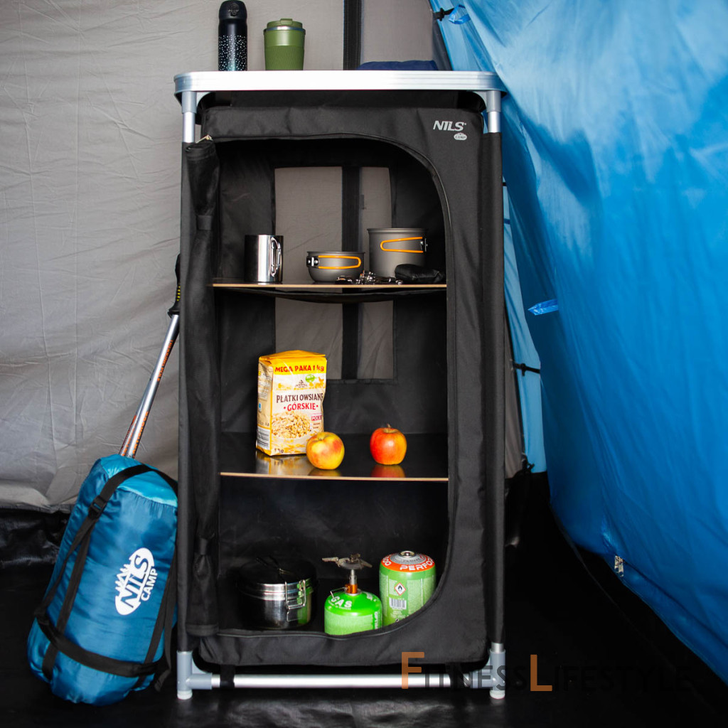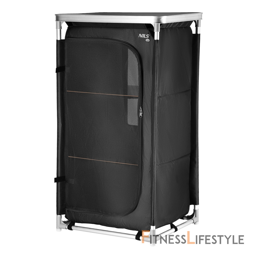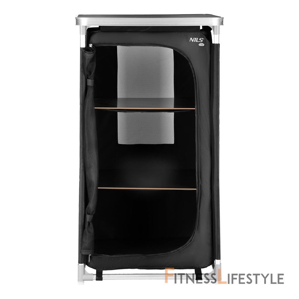 Kempingová skriňa NILS Camp NC3036 je ideálnym pomocníkom počas pobytu v kempe. Rám skrinky tvoria hliníkové rúrky s priemerom 19 milimetrov, ktoré sa spájajú pomocou plastových spojok. Spodné spojky sú opatrené výstupkami, vďaka ktorým rám neleží na podklade, tým odpadá hľadanie roviny a skrinka tak je stabilná aj na nerovnom povrchu. Samotná skrinka je vyrobená z polyesteru v úprave oxford 600D. Táto tkanina je maximálne odolná voči poškodeniu a poveternostným vplyvom ako je dážď a sneh. Tkanina sa navlieka na rúrky, ktoré sa následne spoja av spodnej časti sa skrinka vypne pomocou suchých zipsov. Do skrinky sa následne umiestnia 3 police z MDF dosky a je hotovo. Súčasťou balenia je MDF doska s hliníkovým lemom, ktorá sa nasadí na skrinku a slúži ako praktický stôl. Predný panel je vyrobený zo sieťoviny na cirkuláciu vzduchu, možno ho zrolovať ku kraju a zaisti remienky, alebo uzavrieť pomocou dvojitého zipsu. Zadná strana skrinky je vybavená neodnímateľnou sieťovinou. NC3036 má rozmery 62 x 105 x 48 centimetrov. Po rozložení je možné skrinku zbaliť do dodávaného transportného obalu s uchom. Kempingovú skrinku využijete najlepšie počas pobytu pod stanom. 3 police udržia Vaše oblečenie prehľadne uložené av suchu. Parametre: Upozornenie: