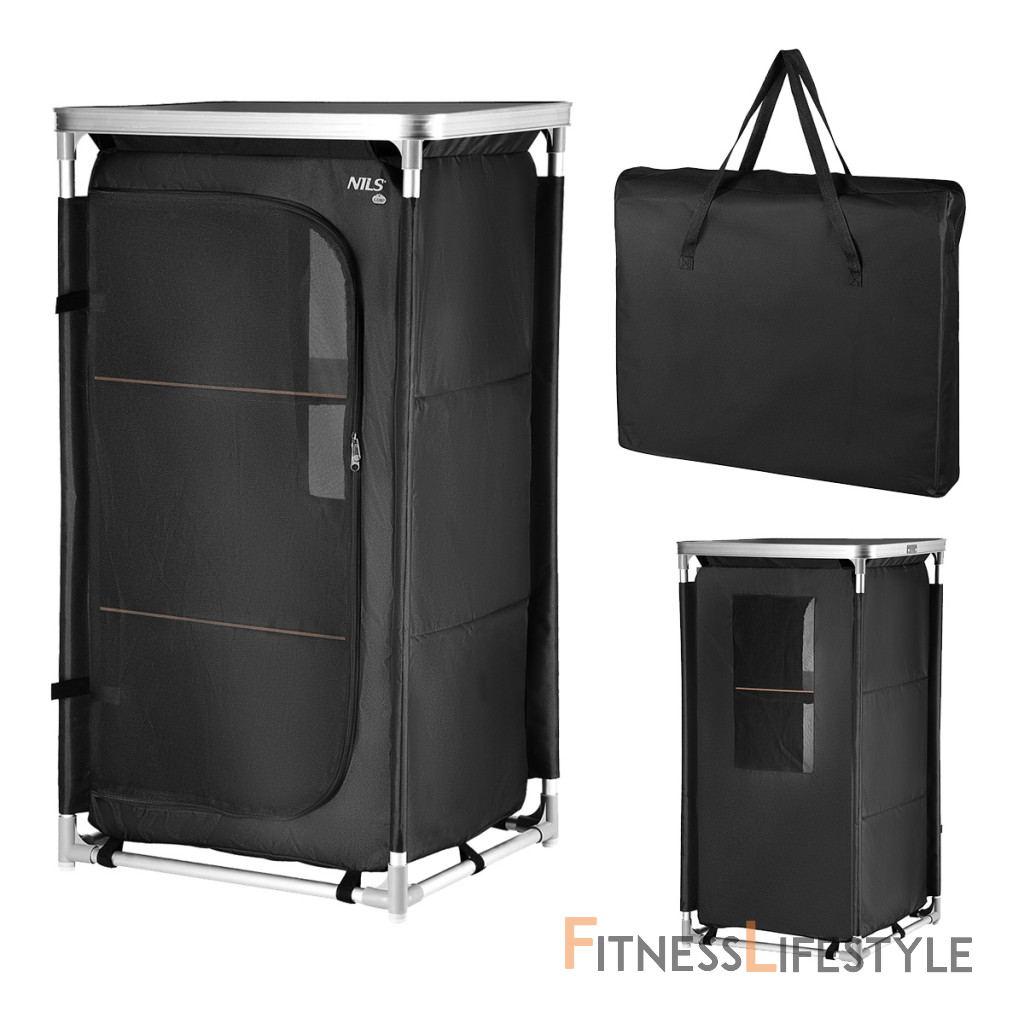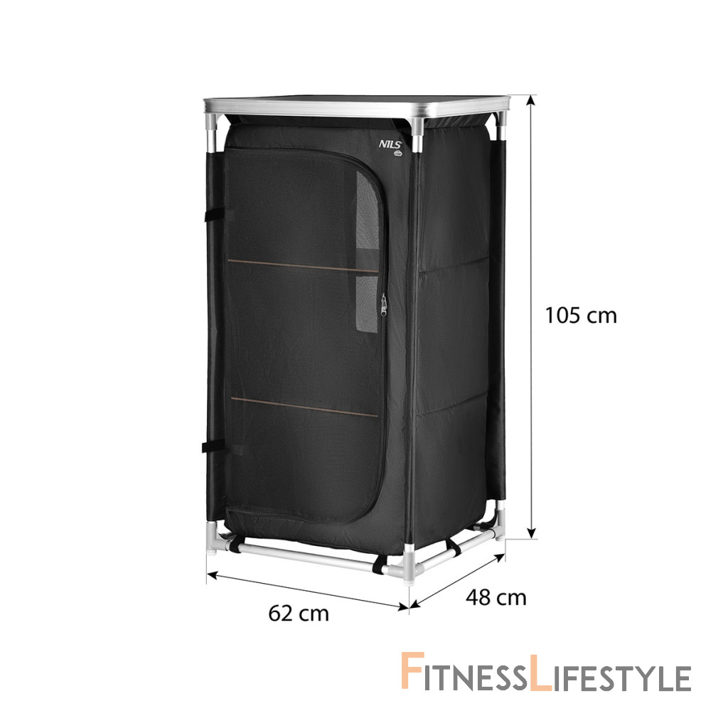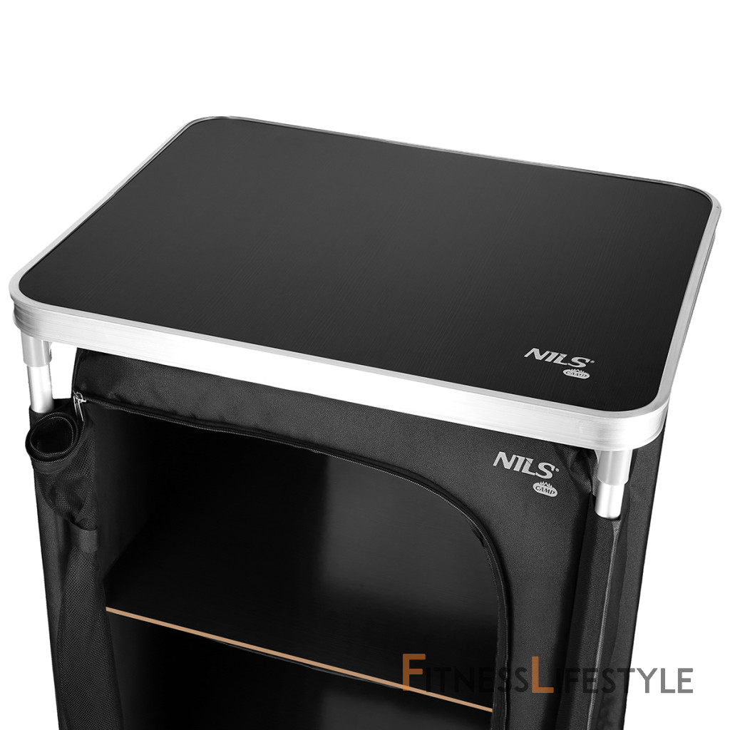 Kempingová skriňa NILS Camp NC3036 je ideálnym pomocníkom počas pobytu v kempe. Rám skrinky tvoria hliníkové rúrky s priemerom 19 milimetrov, ktoré sa spájajú pomocou plastových spojok. Spodné spojky sú opatrené výstupkami, vďaka ktorým rám neleží na podklade, tým odpadá hľadanie roviny a skrinka tak je stabilná aj na nerovnom povrchu. Samotná skrinka je vyrobená z polyesteru v úprave oxford 600D. Táto tkanina je maximálne odolná voči poškodeniu a poveternostným vplyvom ako je dážď a sneh. Tkanina sa navlieka na rúrky, ktoré sa následne spoja av spodnej časti sa skrinka vypne pomocou suchých zipsov. Do skrinky sa následne umiestnia 3 police z MDF dosky a je hotovo. Súčasťou balenia je MDF doska s hliníkovým lemom, ktorá sa nasadí na skrinku a slúži ako praktický stôl. Predný panel je vyrobený zo sieťoviny na cirkuláciu vzduchu, možno ho zrolovať ku kraju a zaisti remienky, alebo uzavrieť pomocou dvojitého zipsu. Zadná strana skrinky je vybavená neodnímateľnou sieťovinou. NC3036 má rozmery 62 x 105 x 48 centimetrov. Po rozložení je možné skrinku zbaliť do dodávaného transportného obalu s uchom. Kempingovú skrinku využijete najlepšie počas pobytu pod stanom. 3 police udržia Vaše oblečenie prehľadne uložené av suchu. Parametre: Upozornenie: