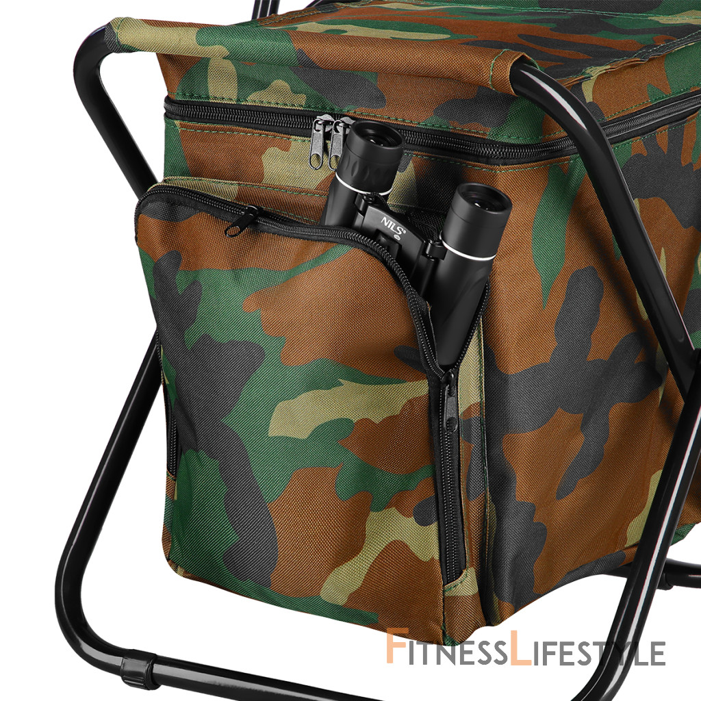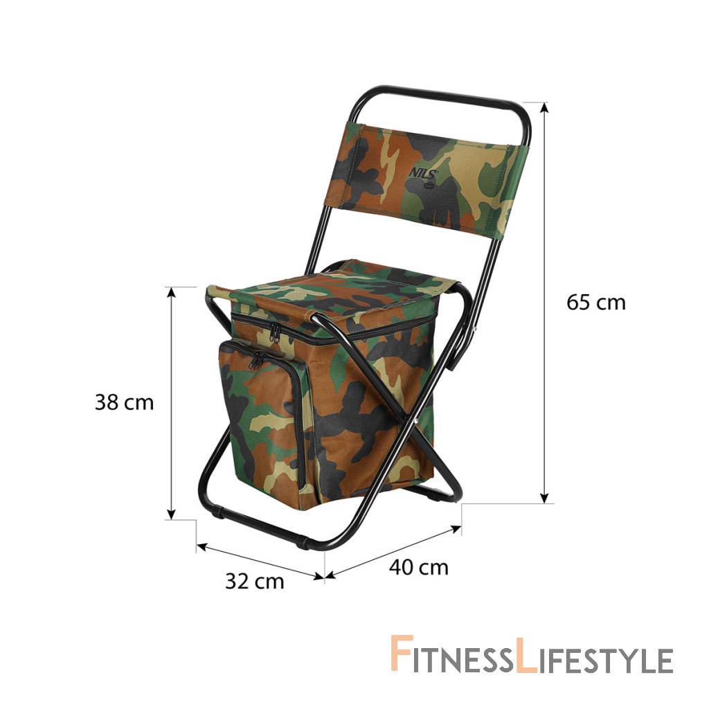 Skladacia, kempingová stolička NILS Camp NC3012 s úložným priestorom je ideálna k vode, na ryby, na festival, alebo napríklad na dovolenku pod stan. Stabilná konštrukcia je vyrobená z oceľových rúrok s priemerom 16 milimetrov, ktoré sú k sebe spojené pomocou kvalitných nitov. Poťah je vyrobený z polyesteru v úprave oxford 600D. Táto tkanina je maximálne odolná voči poškodeniu a poveternostným vplyvom ako je dážď a sneh. Kombinácia kvalitnej konštrukcie a odolnej tkaniny zaisťuje nosnosť až 100 kilogramov. Plastové nožičky zamedzujú poškodeniu rámu. Pod sedákom sa nachádza veľký, úložný priestor, ktorý je z 3 strán uzavretý zipsom. Vnútorná časť je opatrená hladkým povrchom pre ľahkú údržbu. Úložný priestor má dostatočný objem na odloženie napríklad desiaty, niekoľkých plechoviek s nápojom, rybárskeho príslušenstva... Z prednej strany sa nachádza menšie vrecko na zips, do ktorého sa zmestí napríklad peňaženka, kľúče a telefón. Model NC3012 je možné po vyprázdnení úložného priestoru zložiť do rozmeru 54 x 32 x 3,5 cm. Zloženú stoličku je možné pre ľahké prenášanie a uskladnenie vložiť do dodávaného transportného obalu s uchom. Parametre: Upozornenie: