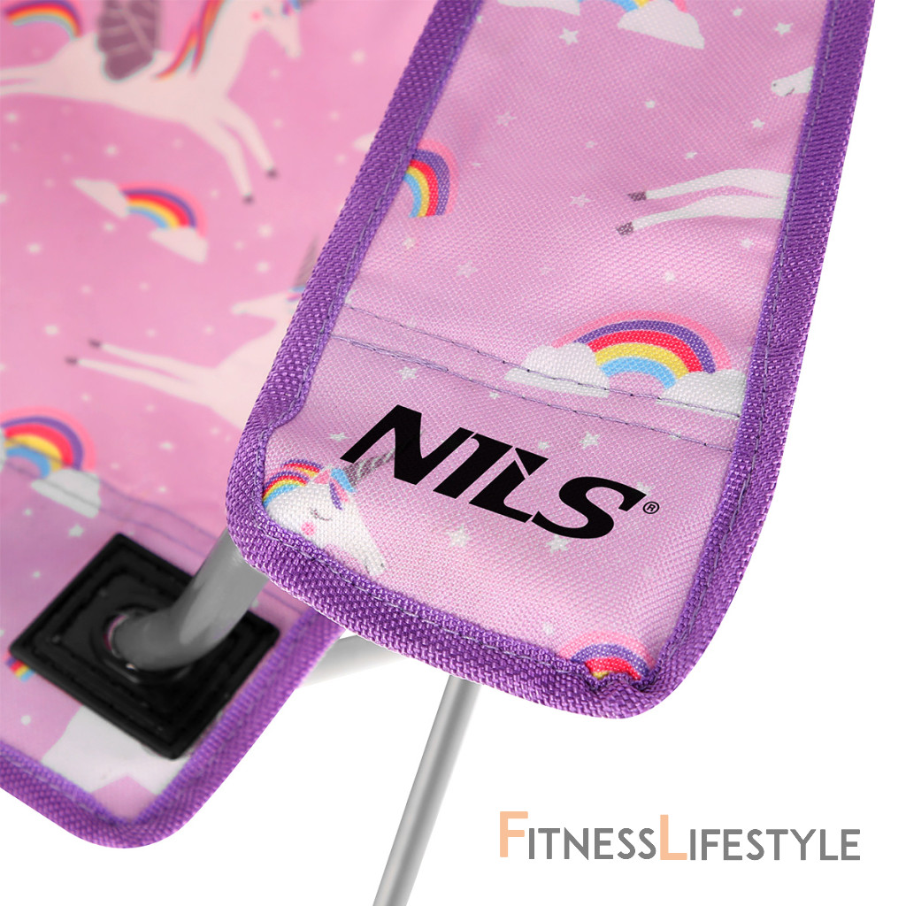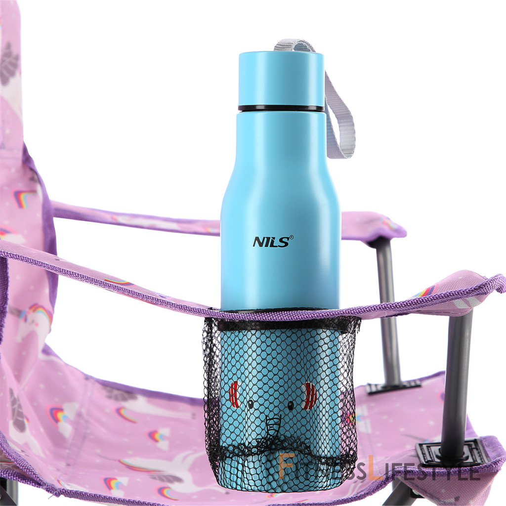Detská, skladacia, kempingová stolička NILS Camp NC3001 je ideálna k vode, na ryby, na festival, alebo napríklad na dovolenku pod stan. Stabilná konštrukcia je vyrobená z oceľových rúrok s priemerom 15 milimetrov, ktoré sú k sebe spojené pomocou kvalitných nitov. Poťah je vyrobený z polyesteru v úprave 600D. Táto tkanina je maximálne odolná voči poškodeniu a poveternostným vplyvom ako je dážď a sneh. Všetky miesta, kde rám prechádza tkaninou, sú opatrené plastovými výstuhami s prešitím. Kombinácia kvalitnej konštrukcie a odolnej tkaniny zaisťuje nosnosť 50 kilogramov. Plastové nožičky majú tvar štvorca a zvyšujú stabilitu kresla, zamedzujú jeho pohybu av mäkkom podloží (napríklad piesok) sa nebúria. Lakťové opierky majú možnosť regulácie výšky jednoduchým posunom zadnej časti po profile konštrukcie. Pravá opierka lakťa je opatrená košíkom, do ktorého sa pohodlne zmestí menšia fľaša, alebo vysoký pohár. Pre ľahké prenášanie je možné stoličku zložiť. Súčasťou je ochranný obal s popruhom cez rameno. Parametre: Upozornenie: