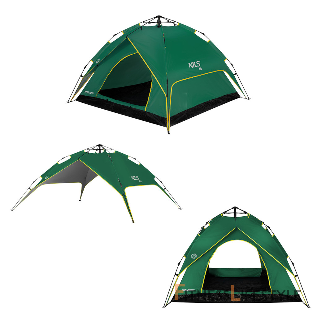 NILS Camp NC7819 Shadow je 3 osobový stan, ktorý oceníte pri potulkách prírodou, spaní pod "širákom" alebo pri krátkom pobyte v kempe. Odnímateľné tropiko je možné využiť ako prístrešok, ktorý vás ochráni pred dažďom alebo slnkom. Automatická skladacia konštrukcia zaisťuje rýchle zloženie a rozloženie stanu.
