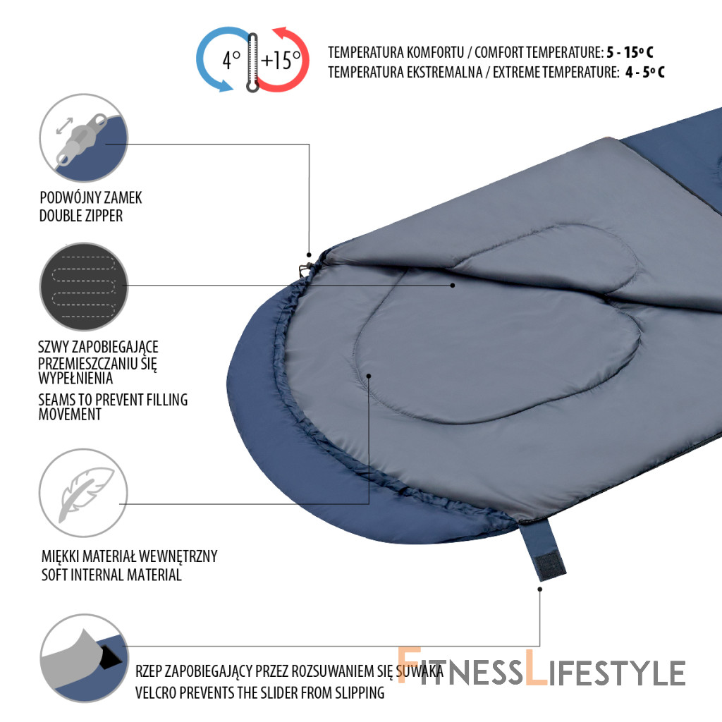 Predĺžený spací vak NILS Camp NC2107 modro-sivý | Fitness Lifestyle