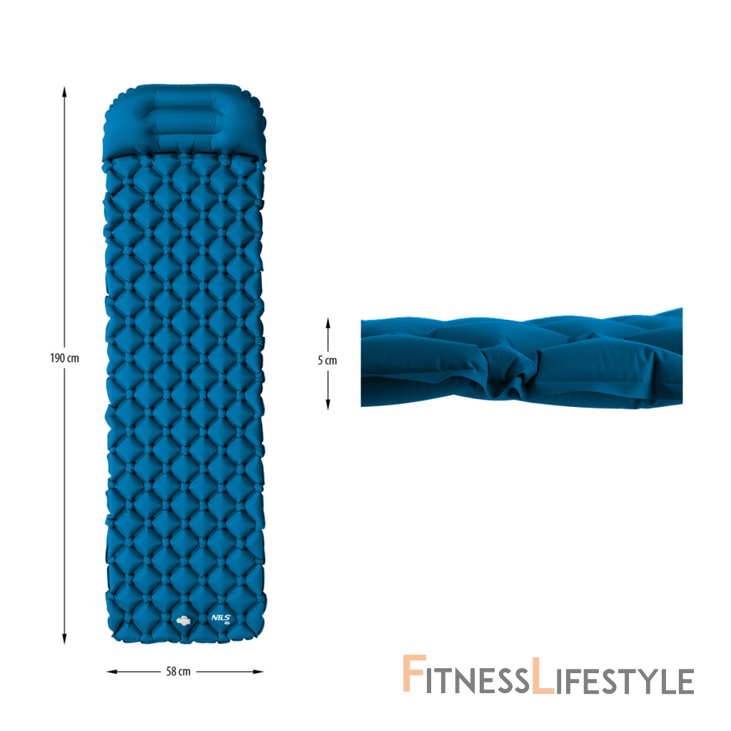 Odpočinok na pláži, kempovanie, spanie vonku alebo pod stanom sú určite obľúbené aktivity mnohých z nás. Pre naše pohodlie však potrebujeme dobré vybavenie. Originálne turistické karimatky od NILS Camp zaručujú pohodlné používanie bez ohľadu na podmienky, v ktorých sa nachádzame. Radi by sme vám predstavili model NC4006. Podložka je nafukovacia, čo sa dá ľahko a rýchlo vykonať vďaka veľkému ventilu. Na nafúknutie môžete použiť pumpičku alebo vlastné ústa. Bez ohľadu na terén, v ktorom sa nachádzate, vám karimatka NC4006 umožní kvalitný odpočinok. Je ideálna ako podložka na spanie. Tráva, piesok a dokonca ani lesné ihličie nebudú mať vplyv na vaše pohodlie. Okrem neuveriteľného pohodlia je podložka vďaka materiálu, z ktorého bola vyrobená, taktiež veľmi odolná. Kombinácia nylonu 40D s poťahom TPU poskytuje vynikajúce výsledky. Samotný materiál TPU je veľmi pružný a odolný proti oderu. Vyznačuje sa tiež veľmi vysokou odolnosťou v rôznych poveternostných podmienkach. V kombinácii s rovnako odolným a nepremokavým nylonom 40D sme si istí, že karimatka prežije v akýchkoľvek podmienkach. V zloženom stave zaberá podložka veľmi málo miesta a jej skladanie je veľmi jednoduché. Stačí odskrutkovať ventil a karimatku zrolovať od horného okraja. Nemusíte sa báť, že sa sama rozbalí, pretože má popruh, ktorý podložku po zrolovaní zaistí. V sade je navyše praktické puzdro, do ktorého môžeme karimatku zabaliť. Uľahčí vám prepravu a navyše chráni podložku pred poškodením. Vďaka svojej veľkosti a hmotnosti len 0,68 kg ju môžete mať ľahko pri sebe na každej ceste. Výrobok bol vyrobený z najkvalitnejších materiálov, takže ho určite nepoškodí nerovnosti terénu, a bude tak slúžiť po mnoho sezón. Pokiaľ by však podložka nešťastnou náhodou utrpela drobné poškodenie, je dodávaná so sadou na opravu. Pomocou nej môžete poškodenie ľahko a rýchlo opraviť. Parametre: Upozornenie: